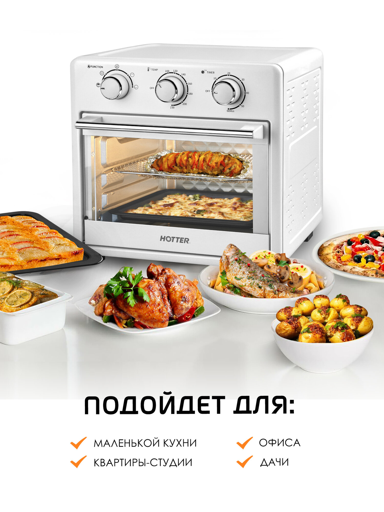 Духовка электрическая настольная с конвекцией HOTTER HX-16, мини печь- аэрогриль, 16 литров, 5 режимов, 1200 Вт, белая интересное: