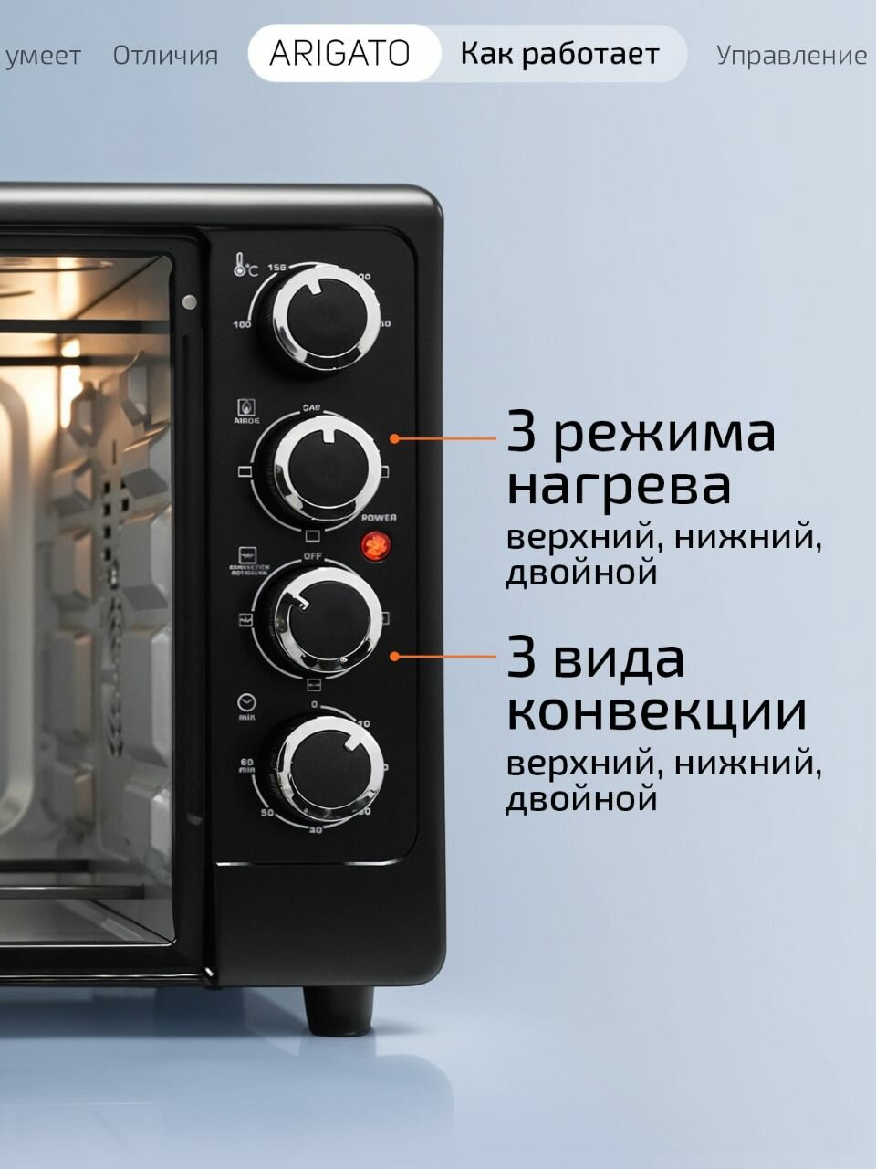 Мини-печь Arigato WJ2024082201, 48л, механическое управление, чёрная интересное: