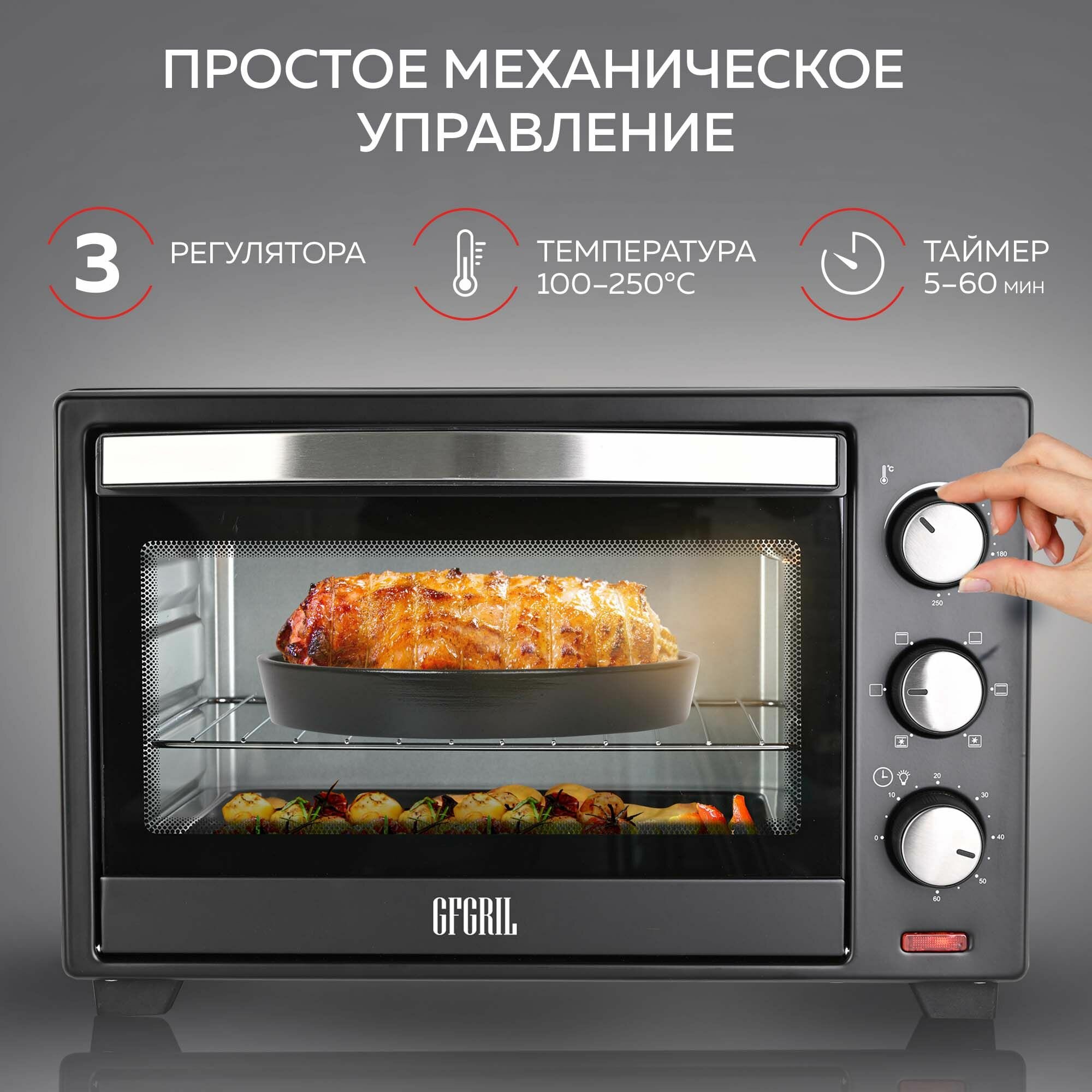 Многофункциональная мини-печь электрическая GFGRIL GFO-26B, 26л, 1600 Вт, интересное: