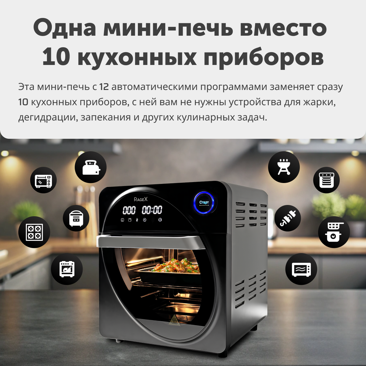 Электрическая мини-печь, объем камеры 14.5 литров, мощность 1700 Вт, черная интересное: