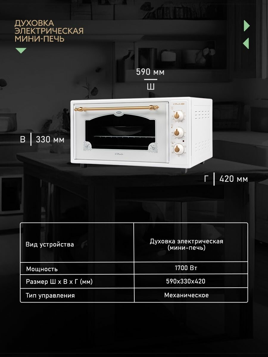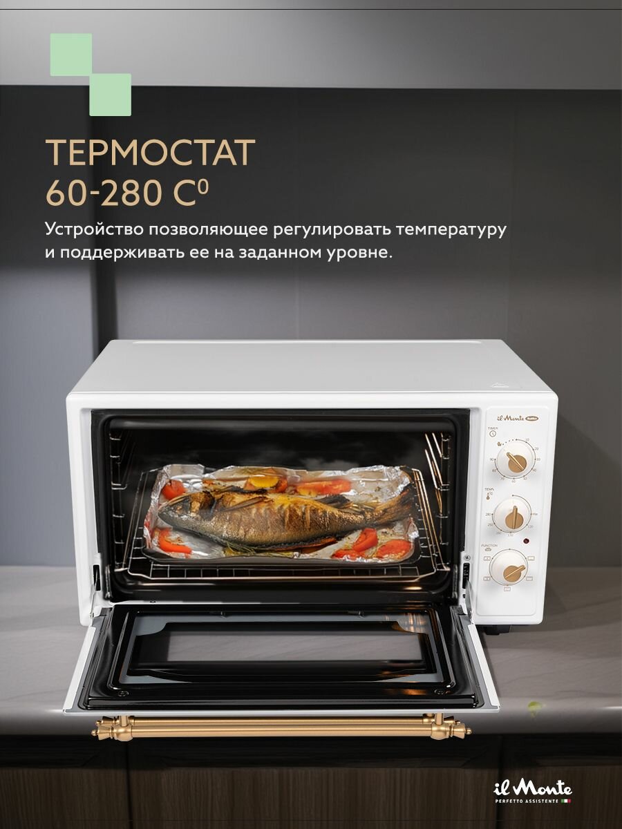Духовка электрическая настольная, 50 л, Конвекция, Двойное стекло + Фиксация дверцы, Автоотключение по таймеру, il Monte EO-5015 интересное: