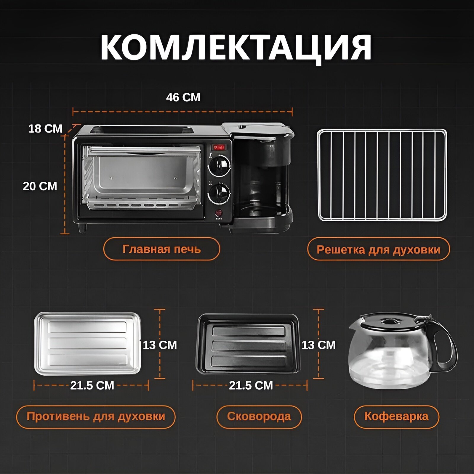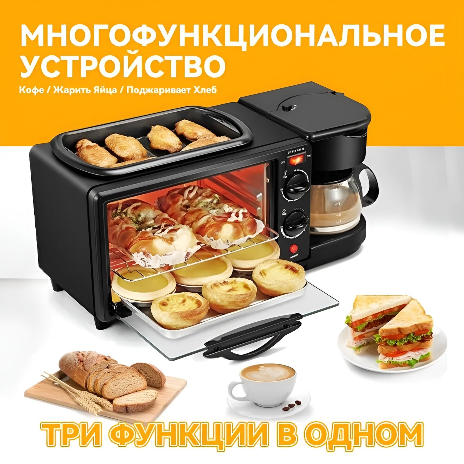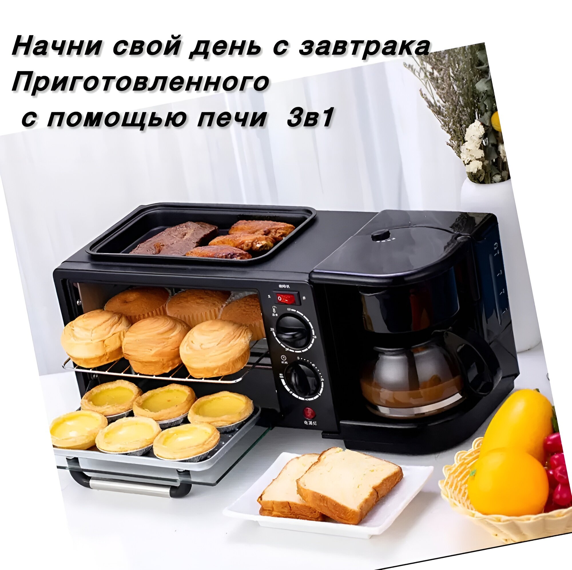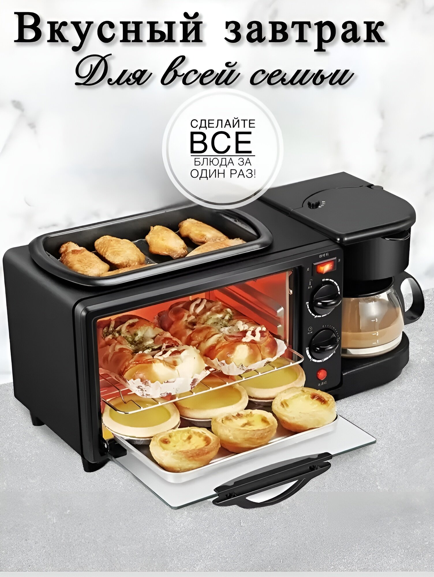 Многофункциональная электрическая духовка 3в1 1250Вт Мини-печь Кофеварка Гриль Сковорода JD-002 интересное: