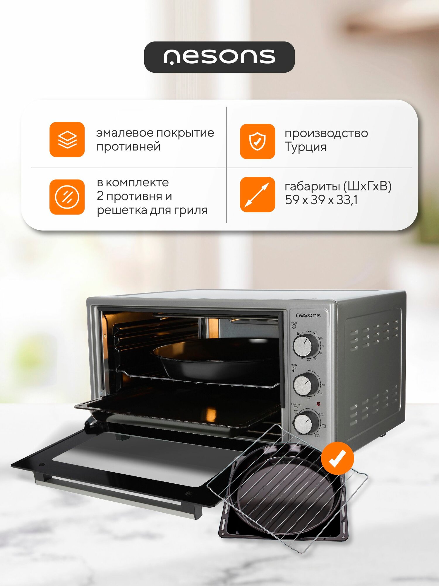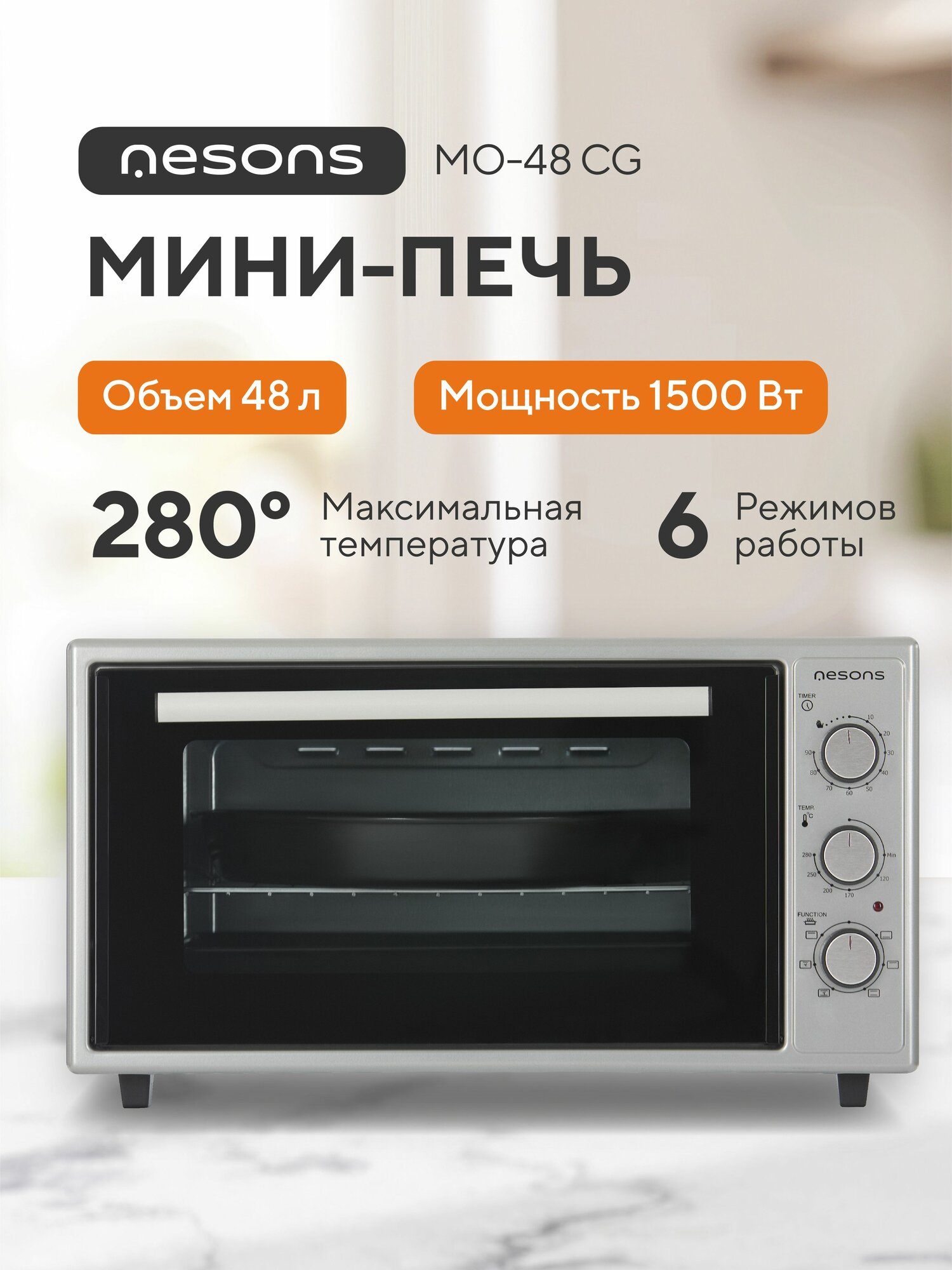 Ниже Вы можете прочитать отзывы на Электрическая мини-печь духовка настольная конвекция и гриль Nesons МО-48CG серый, ознакомится с подробными характеристиками, посмотреть интересные обзоры и фотографии на Электрическая мини-печь духовка настольная конвекция и гриль Nesons МО-48CG серый.