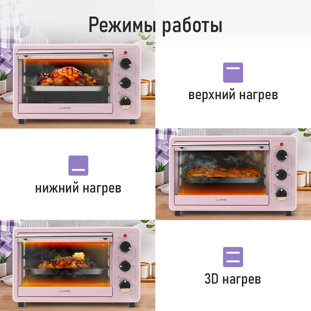 Духовка духовой шкаф мини-печь LUMME LU-EO1715B 30 литров конвекция гриль розовый опал интересное: