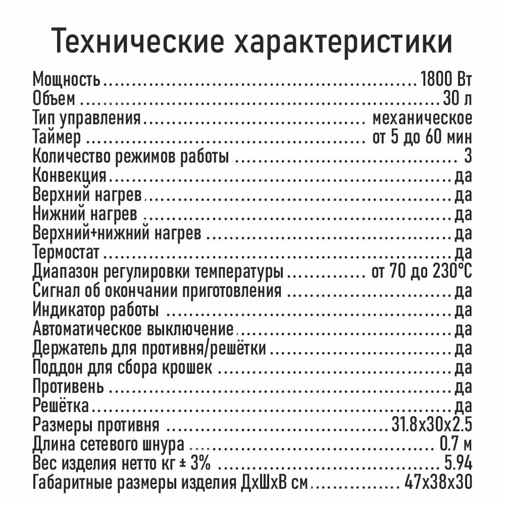 Мини-печь GURMAN GR-HL630, 63л, 2200Вт.