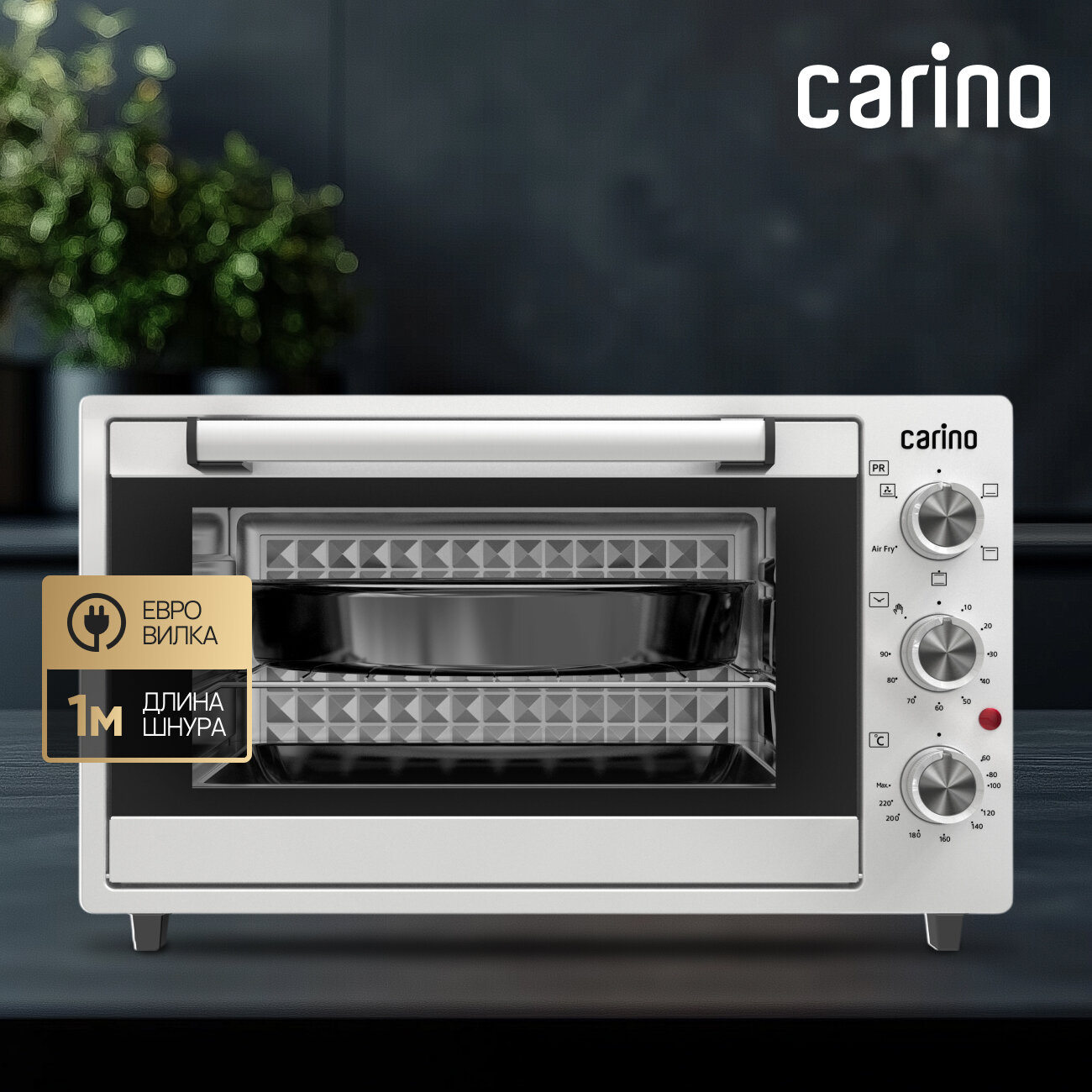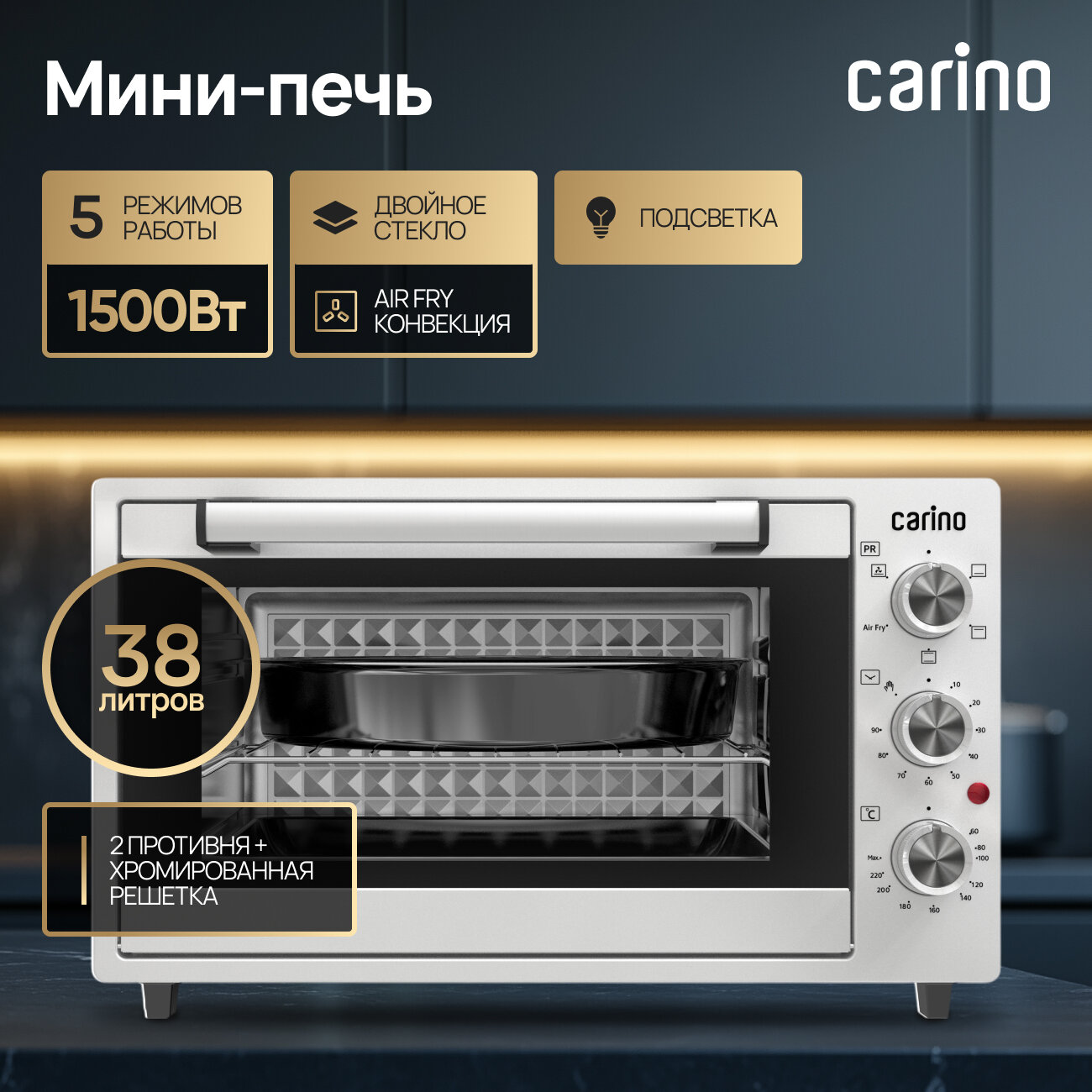 Мини-печь CARINO CM3875, 5 режимов, 38л, AIR FRY конвекция, 1500 Вт, подсветка интересное: