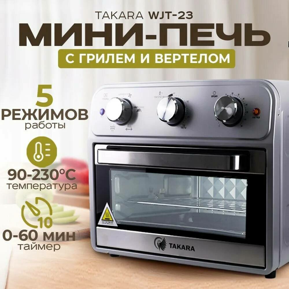 Купить Мини-печь TAKARA WJT-23 / 5 режимов, духовка электрическая 1800 Вт / 21 литр / печь с грилем и вертелом