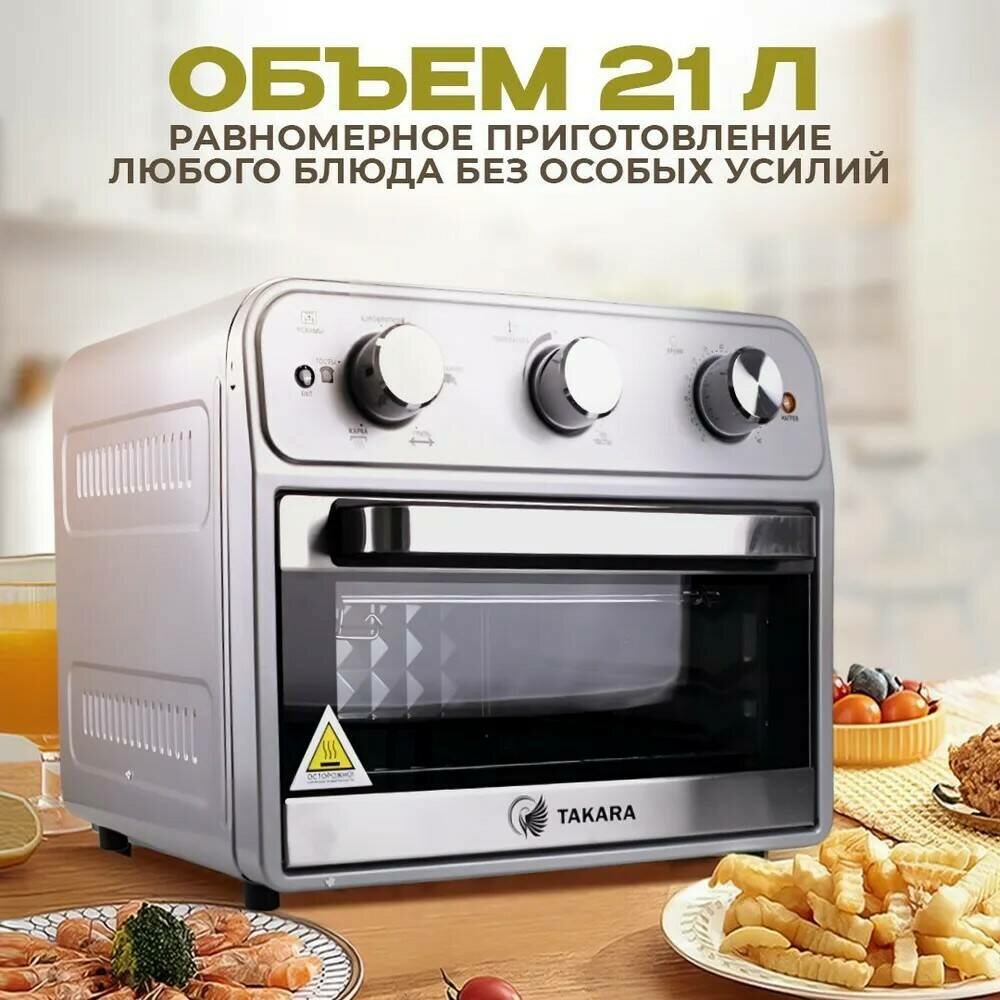 Мини-печь TAKARA WJT-23 / 5 режимов, духовка электрическая 1800 Вт / 21 литр / печь с грилем и вертелом интересное: