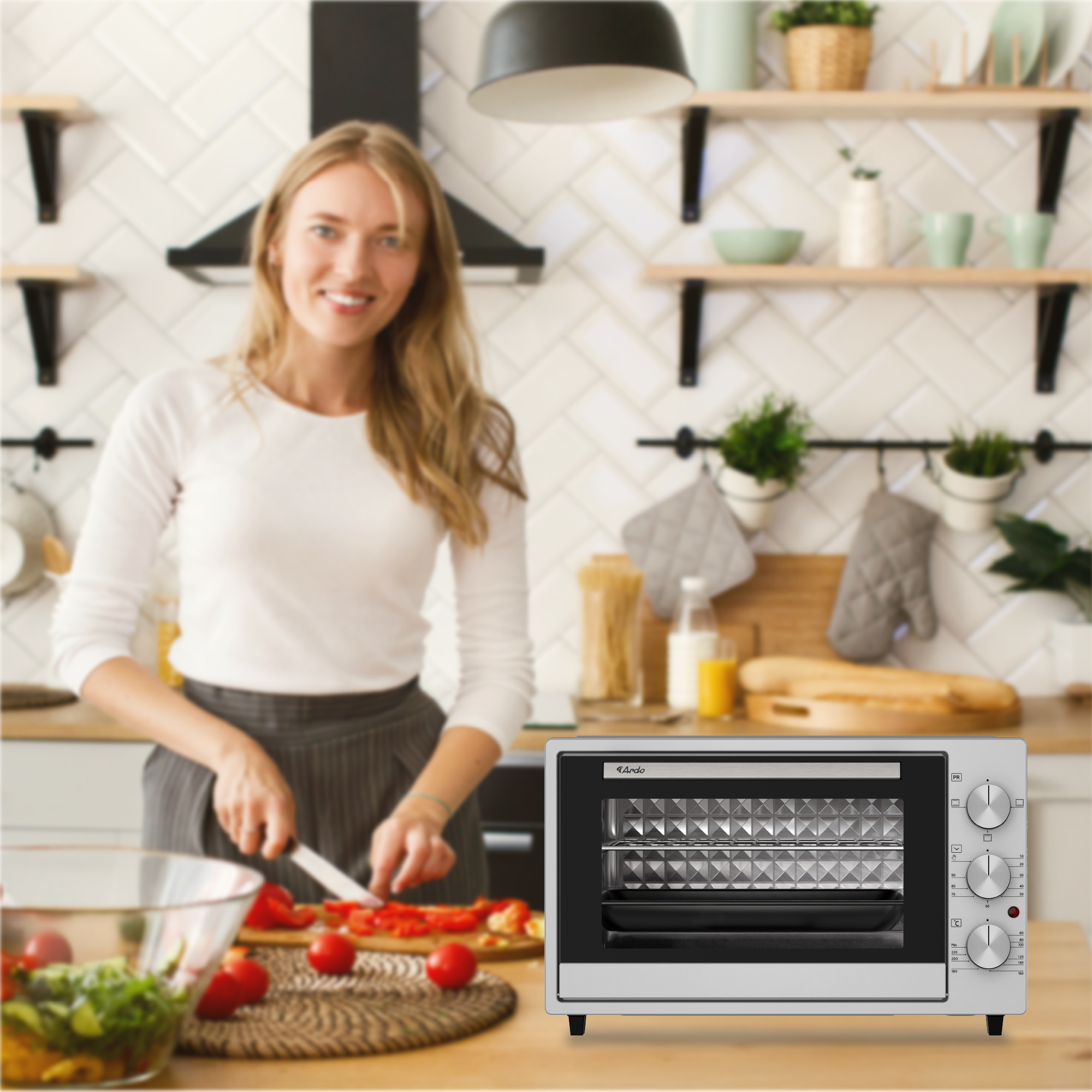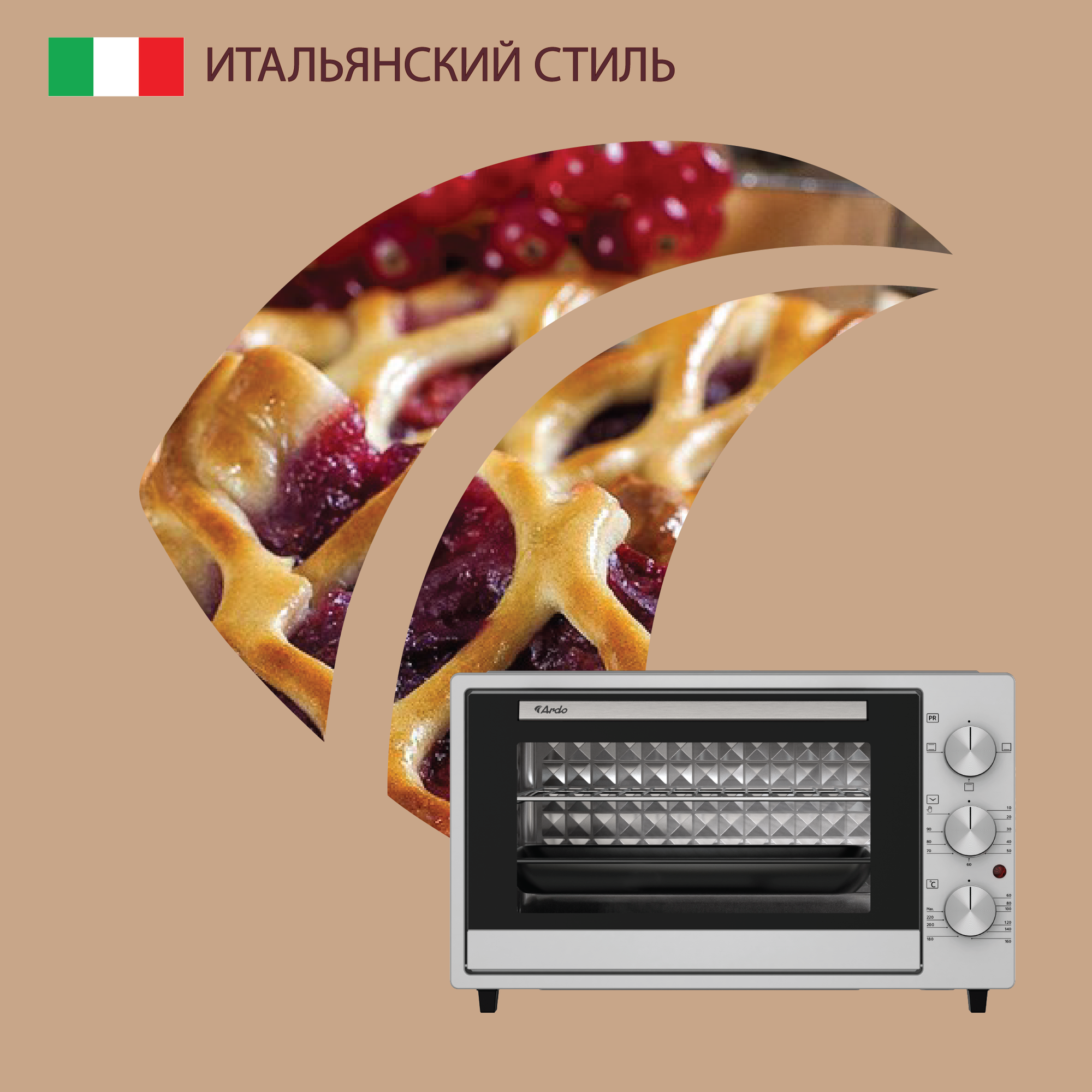 Мини-печь Ardo 38 литров , Духовка электрическая настольная 1500 Вт, 3 режим, 2 противня + хромированная решетка, таймер
