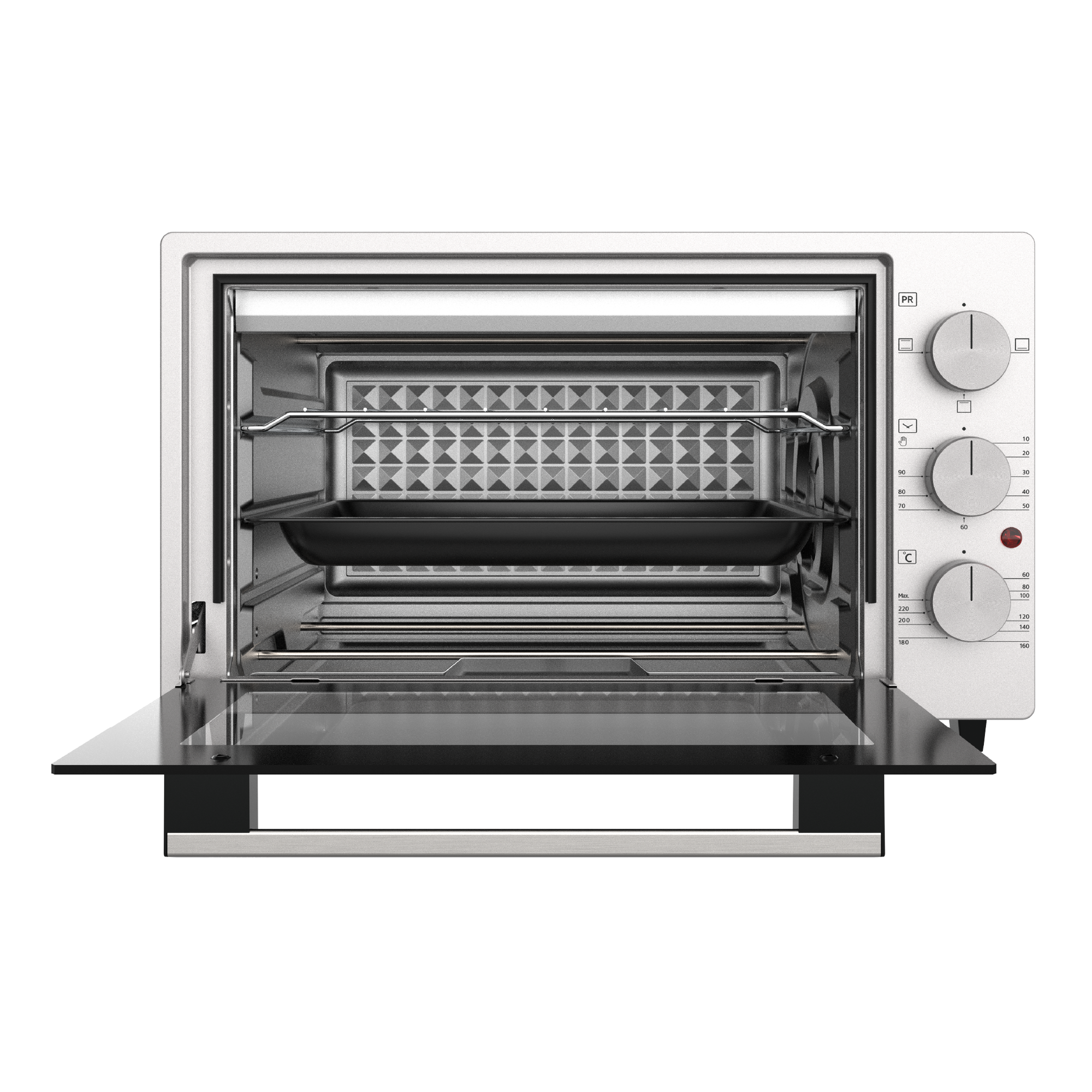 Мини-печь Ardo 5 режим, конвекция, 38 л, 2 противня +решетка, турбовентилятор, двойное стекло дверцы, таймер