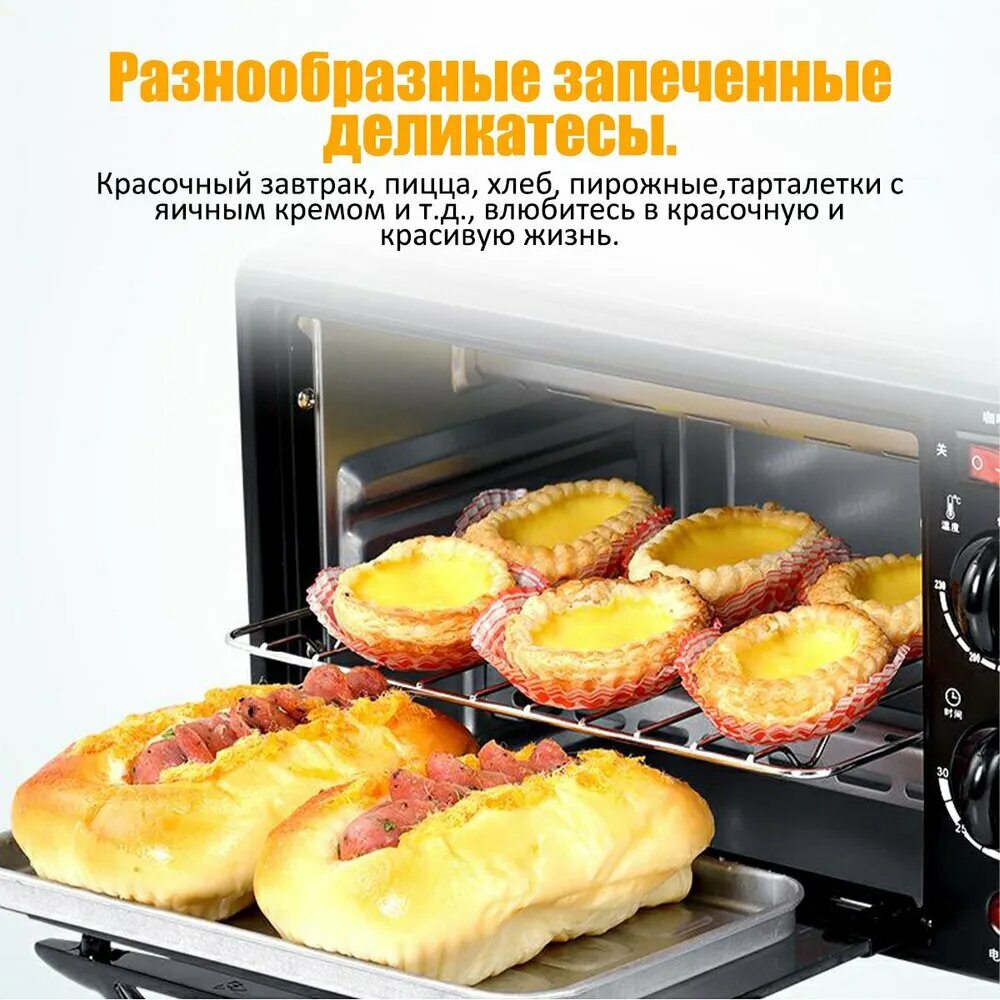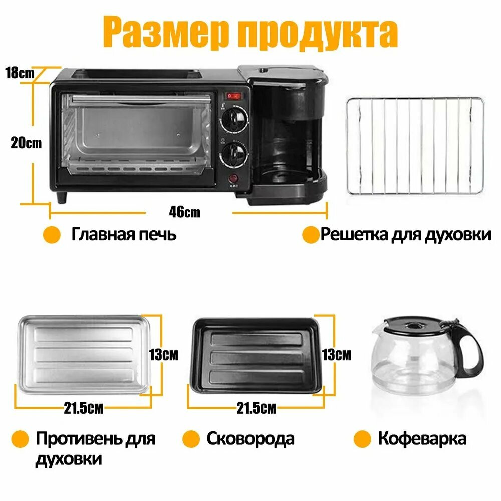 Мини-печь 3 в 1, гриль, кофеварка, 3 режима работы, черная, 9 л интересное:
