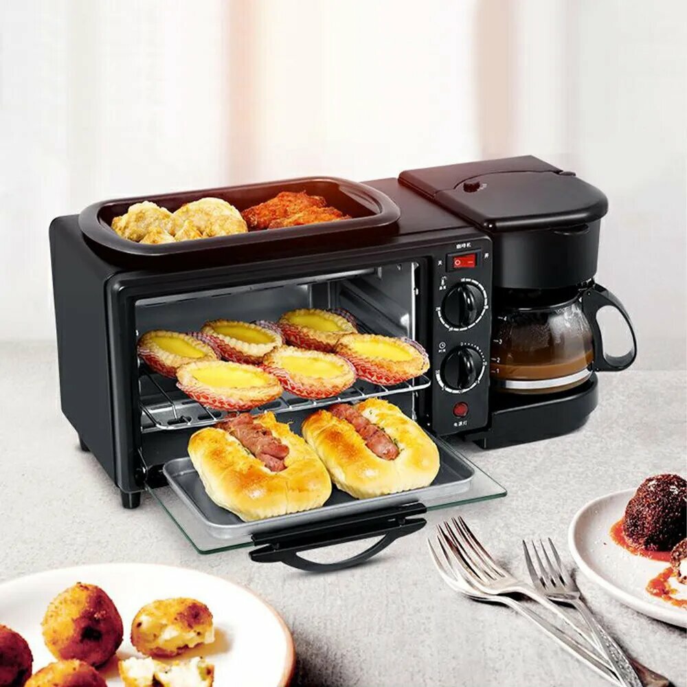 Купить Мини-печь 3 в 1, гриль, кофеварка, 3 режима работы, черная, 9 л