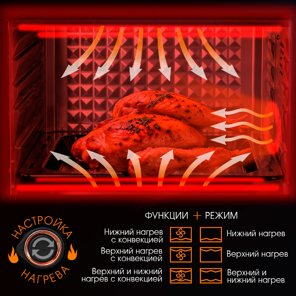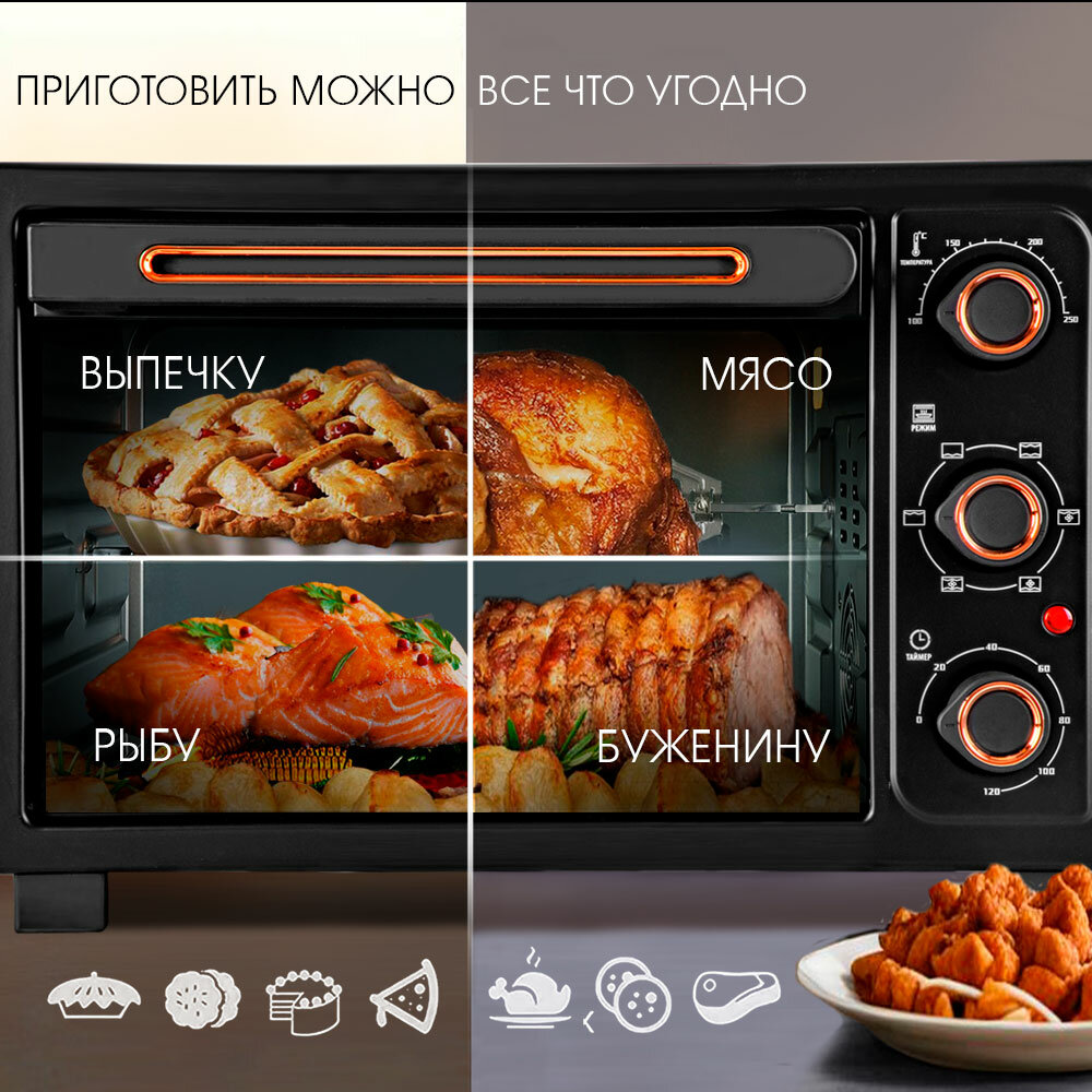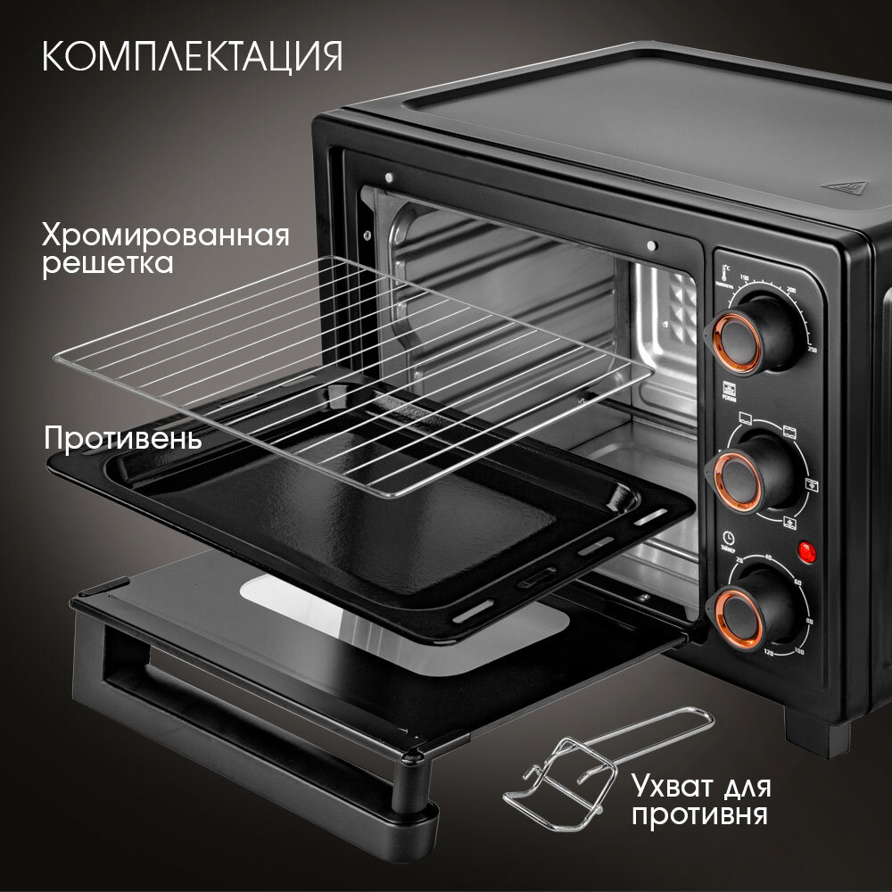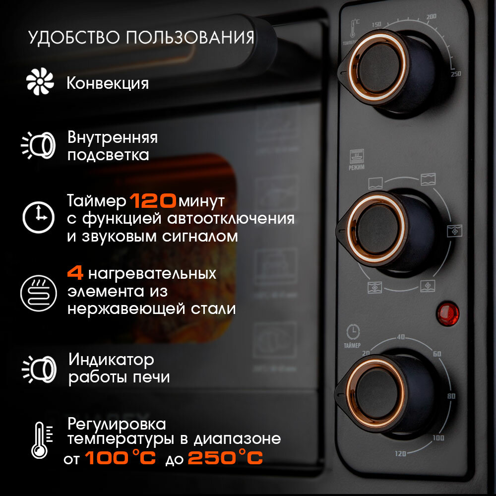 Мини печь электрическая TUAREX TK-5030, 1500 Вт, духовка электрическая настольная 30 литров, конвенция, 100-250 градусов интересное: