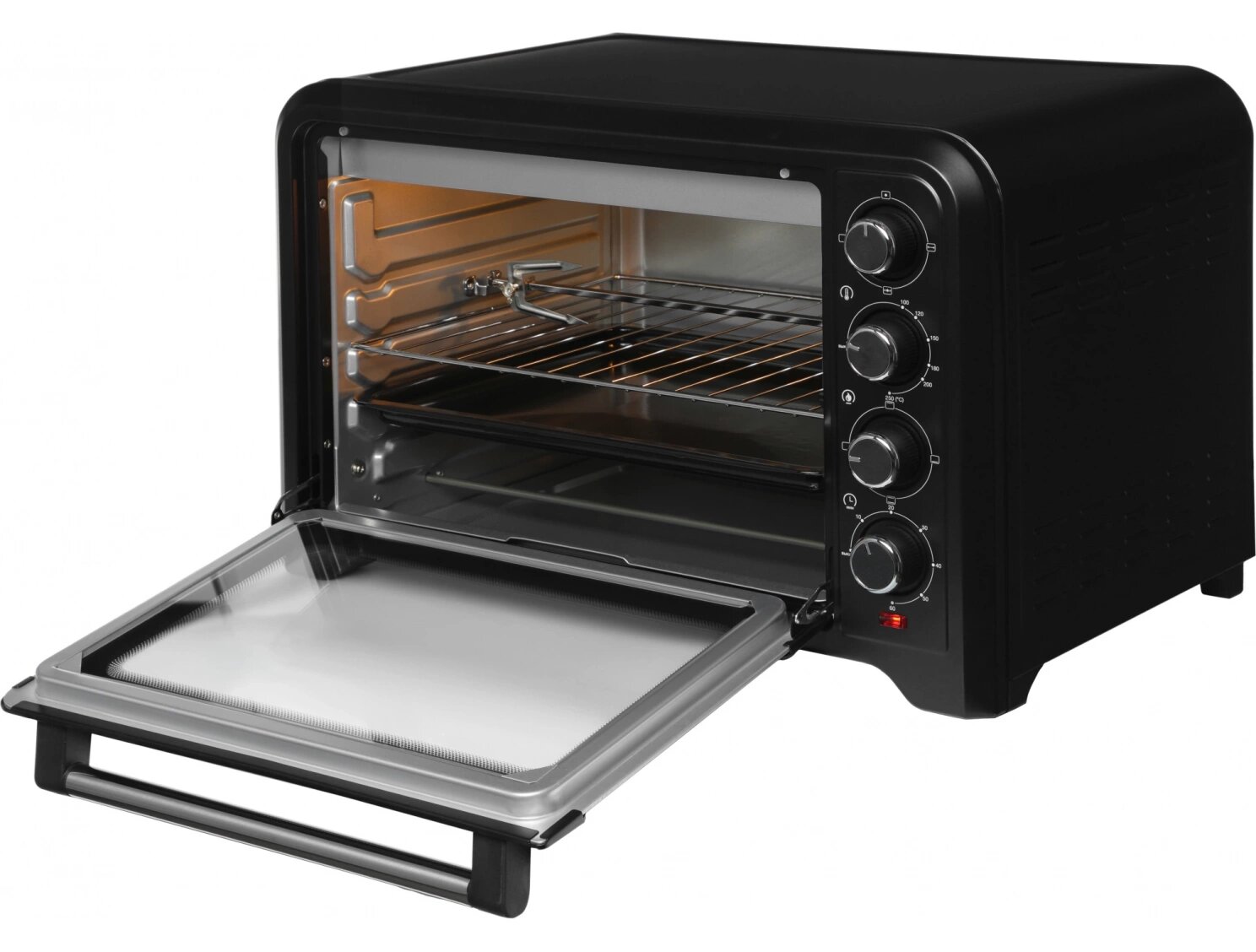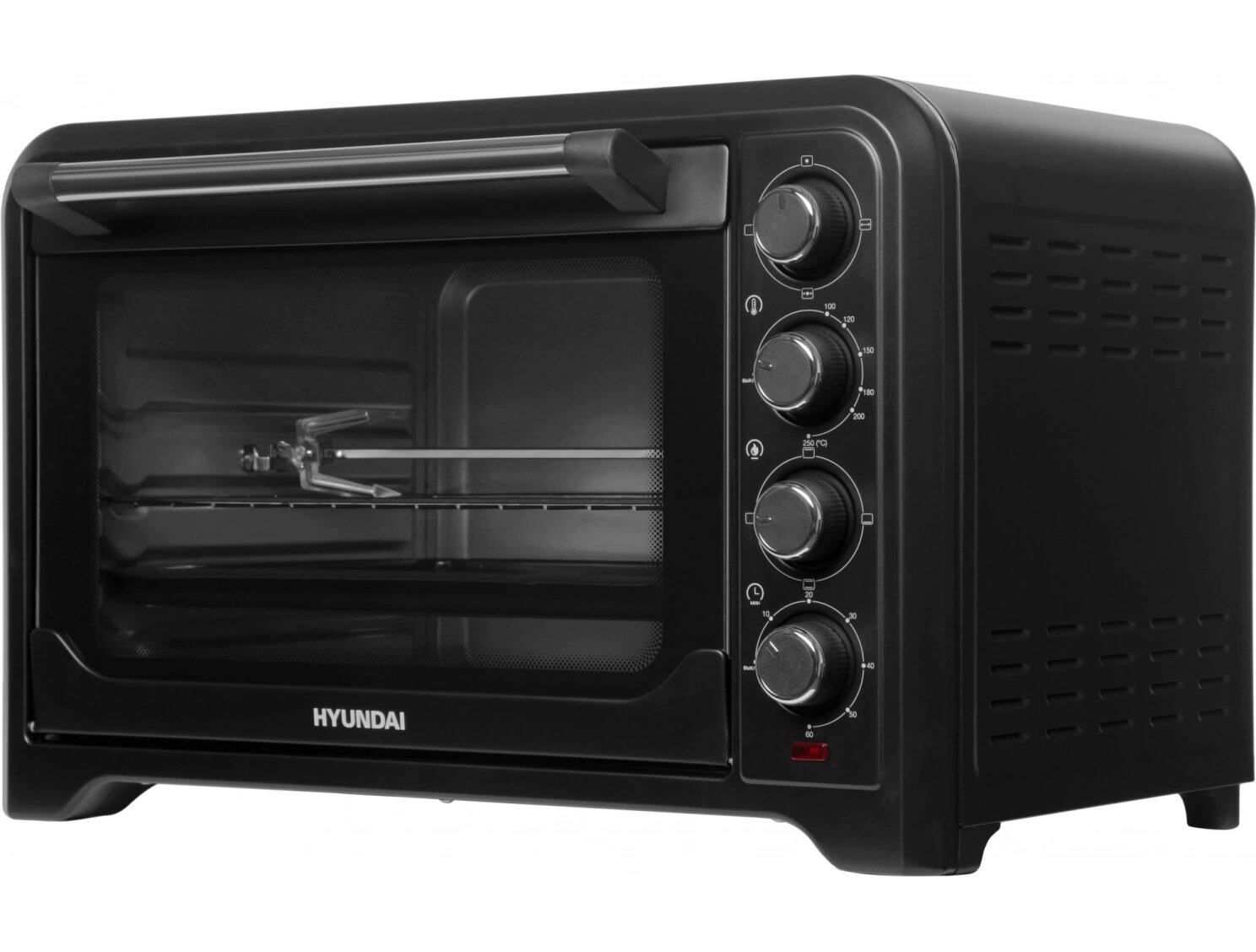 Мини-печь Hyundai MIO-HY105 черный, мощность 2000Вт, объем 45л, механическое управление, температура 100 С-250 С интересное: