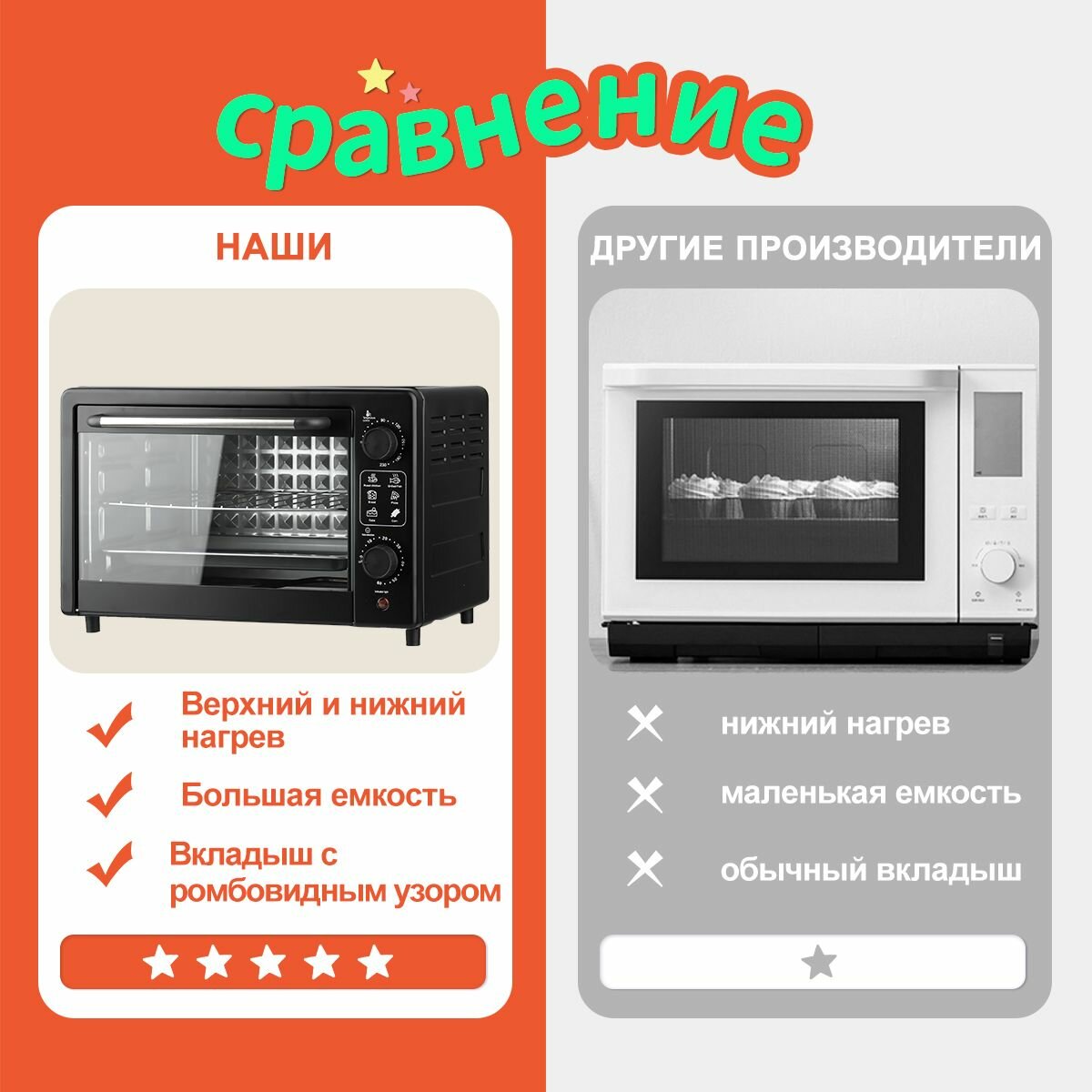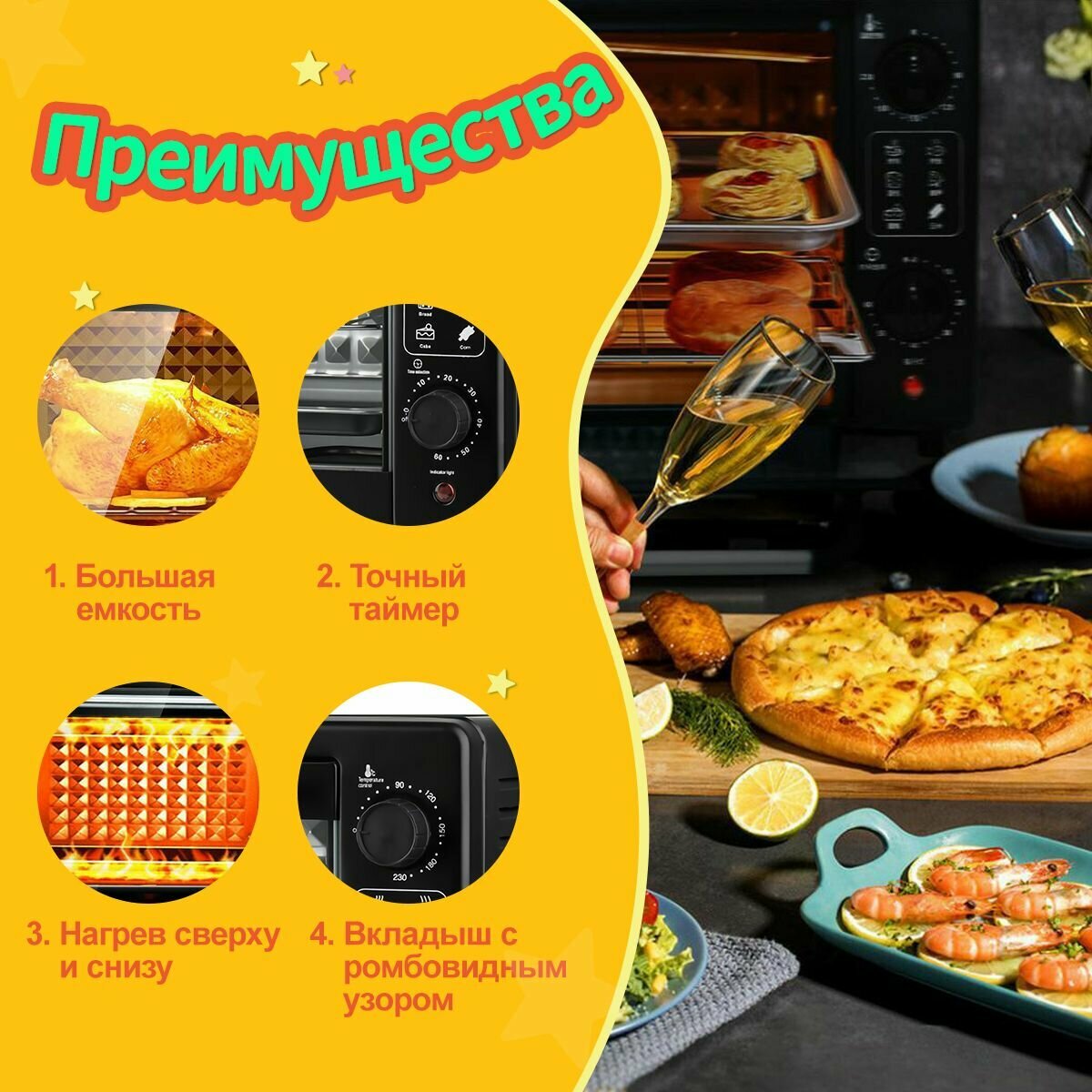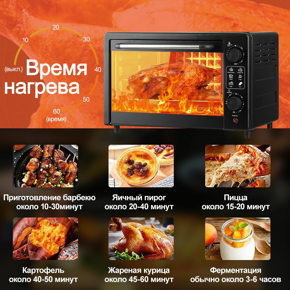 Мини-печь, 22л, механическое управление, 60 мин таймер, чёрная интересное: