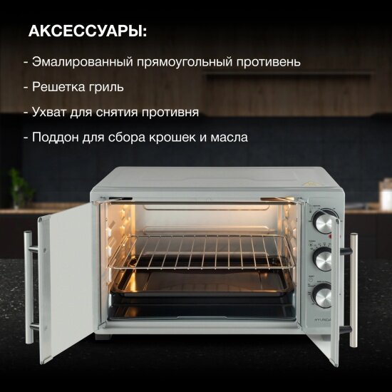 Мини-печь Hyundai MIO-HY077 серебристый интересное: