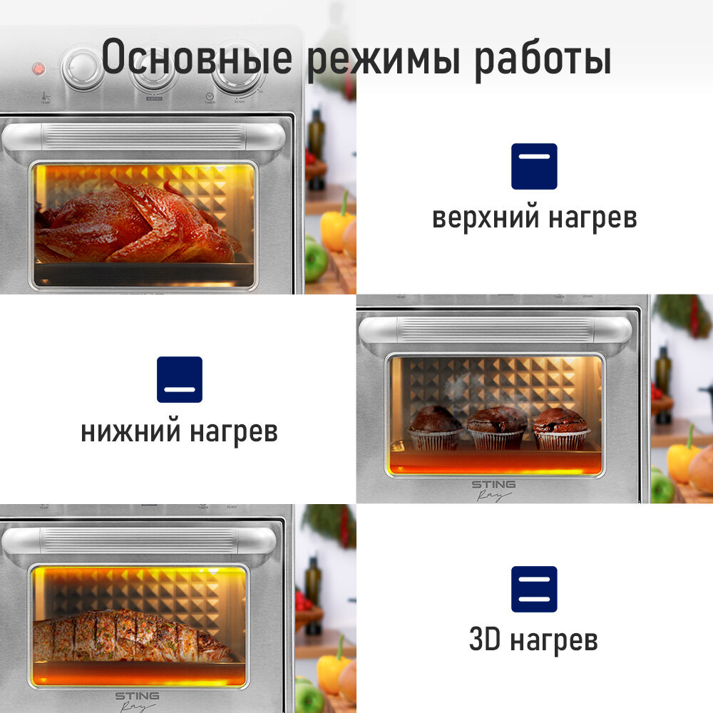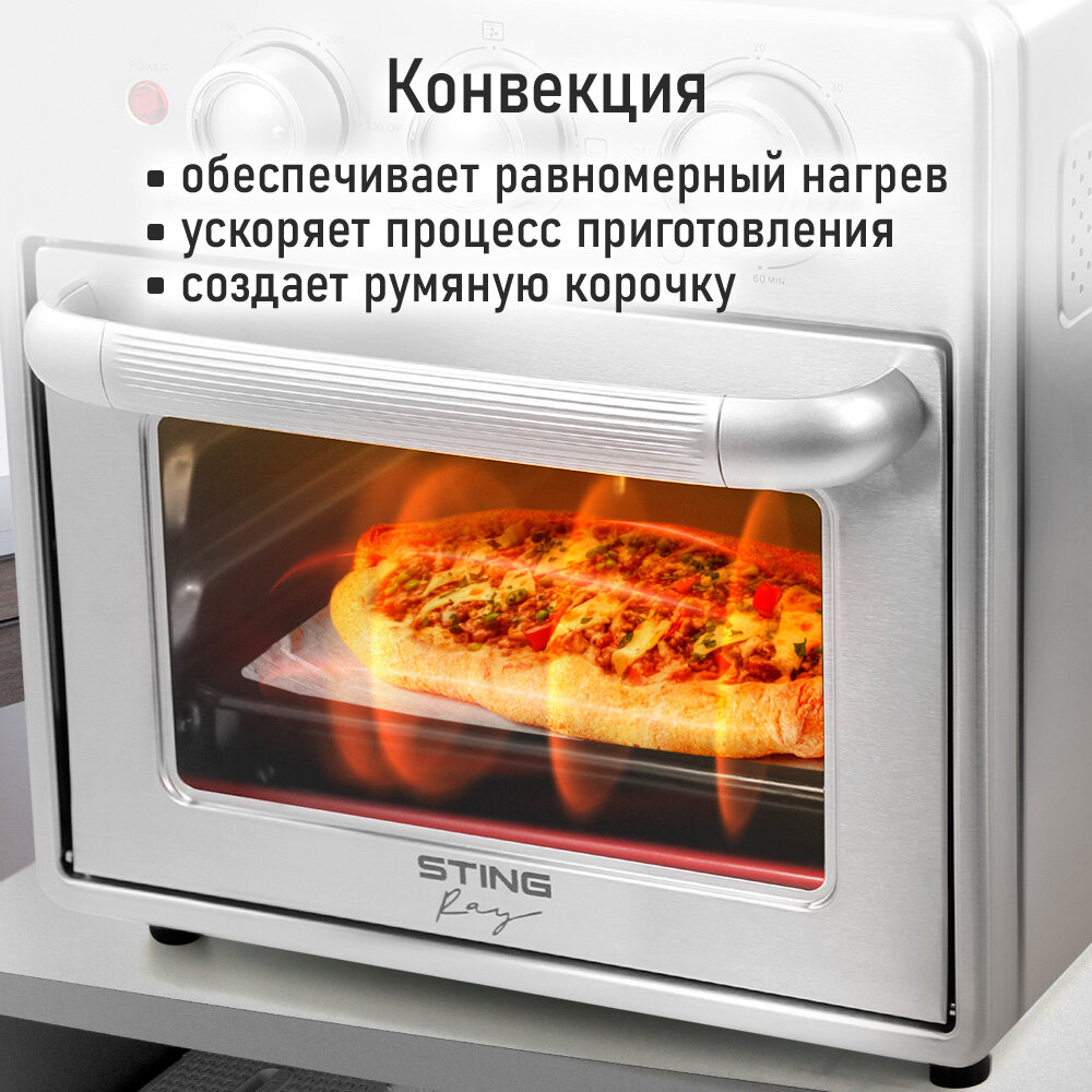 Аэрогриль духовка духовой шкаф мини-печь гриль аэрофритюрница тостер 6 в 1 STINGRAY ST-EO126A 20 литров конвекция сталь интересное: