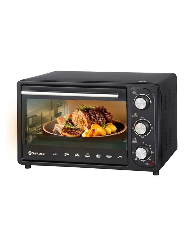 Купить Духовка электрическая Sakura SA-7004B, черная, 18л, 1300Вт, механическое управление, 3 режима работы