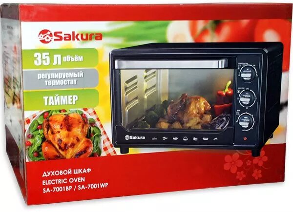 Духовка электрическая Sakura SA-7004B, черная, 18л, 1300Вт, механическое управление, 3 режима работы интересное: