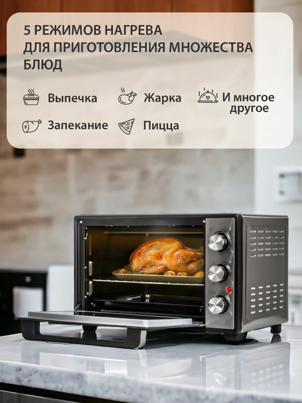 | Режимы работы | верхний нагрев, верхний+нижний нагрев, конвекция, нижний нагрев |