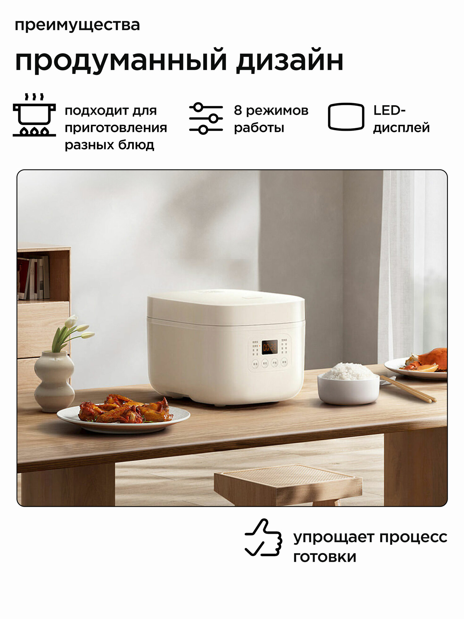 Рисоварка Mijia Rice Cooker N1 4L Cream White MFB13BO интересное: