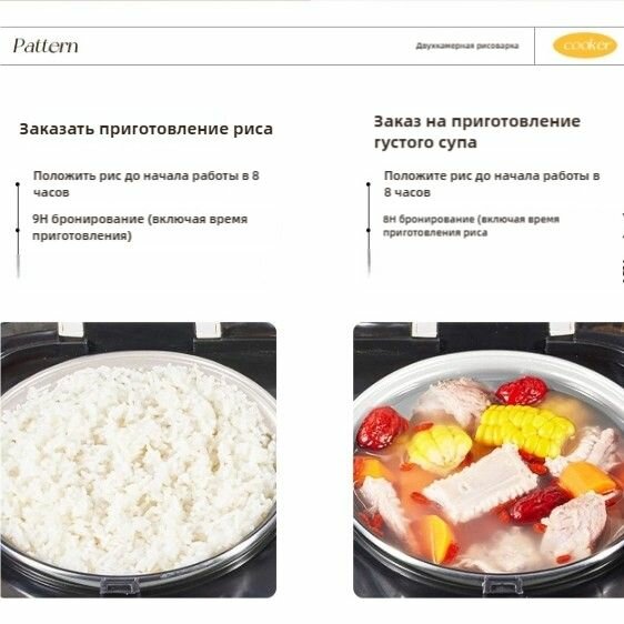 | Подробная комплектация | Продукт ×1 Внутреннюю чашу ×2 Парочную корзину из нержавеющей стали ×1 Пластиковую парочную корзину ×1 Ложку для риса ×1 Сетевой шнур ×1 Мерный стакан ×1 |