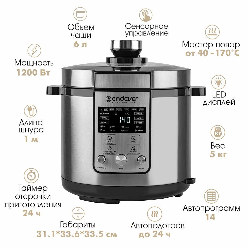 Мультиварка скороварка 6 литров ENDEVER VITA-150 / 14 автоматических программ + мастер-повар интересное:
