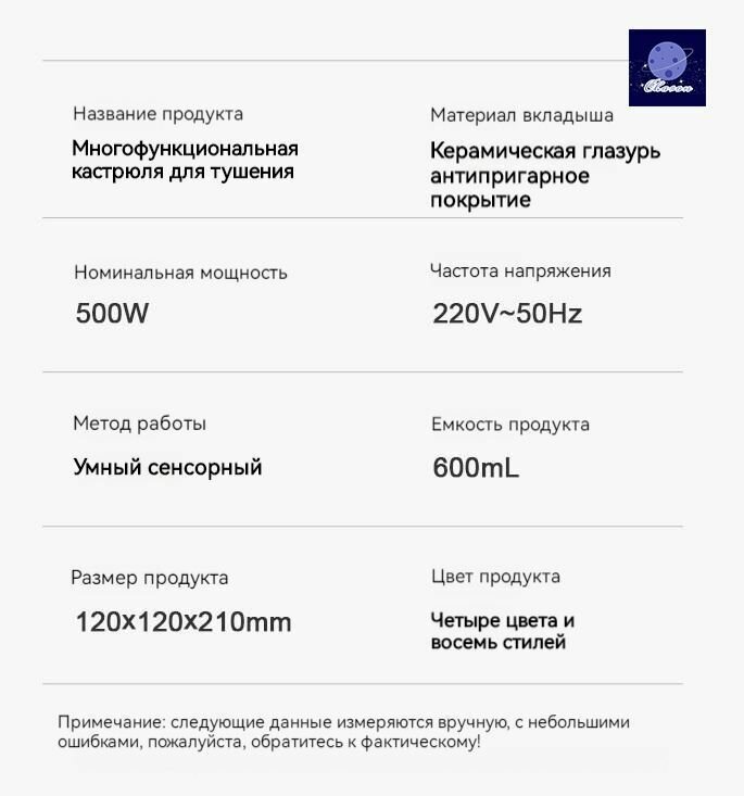 | Подробная комплектация | Электрическая кастрюля, шнур питания и европейский адаптер |