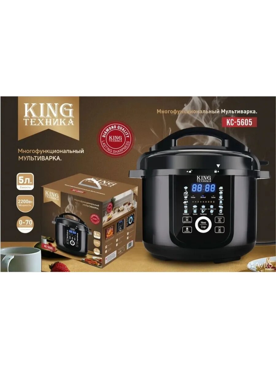 Мультиварка King KC-5605, 5 л, тефлоновая чаша, электронное управление, мощность 2200 Вт, цвет чёрный интересное: