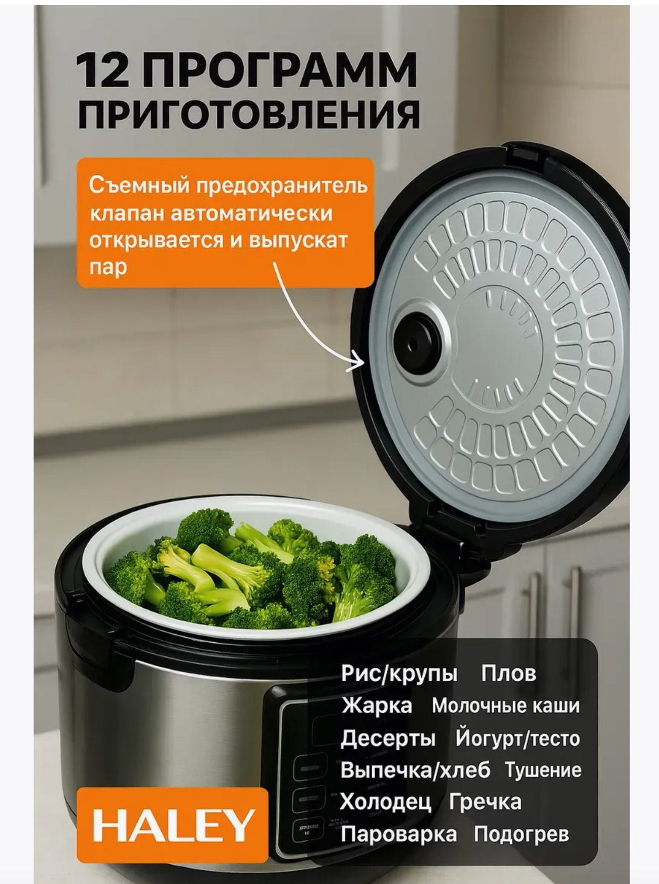 Мультиварка Haley HY-2209, 12 автоматических программ, 6 л, тефлоновая чаша интересное: