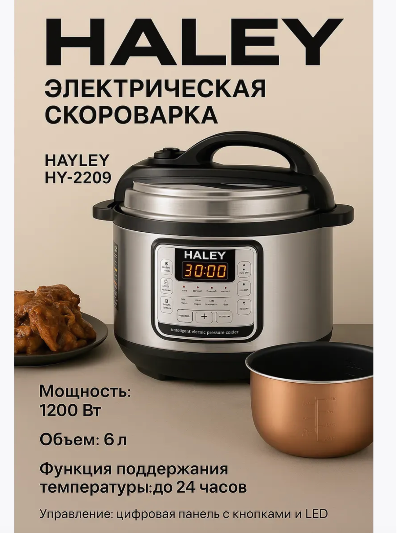 Ниже Вы можете прочитать отзывы на Мультиварка Haley HY-2209, 12 автоматических программ, 6 л, тефлоновая чаша, ознакомится с подробными характеристиками, посмотреть интересные обзоры и фотографии на Мультиварка Haley HY-2209, 12 автоматических программ, 6 л, тефлоновая чаша.