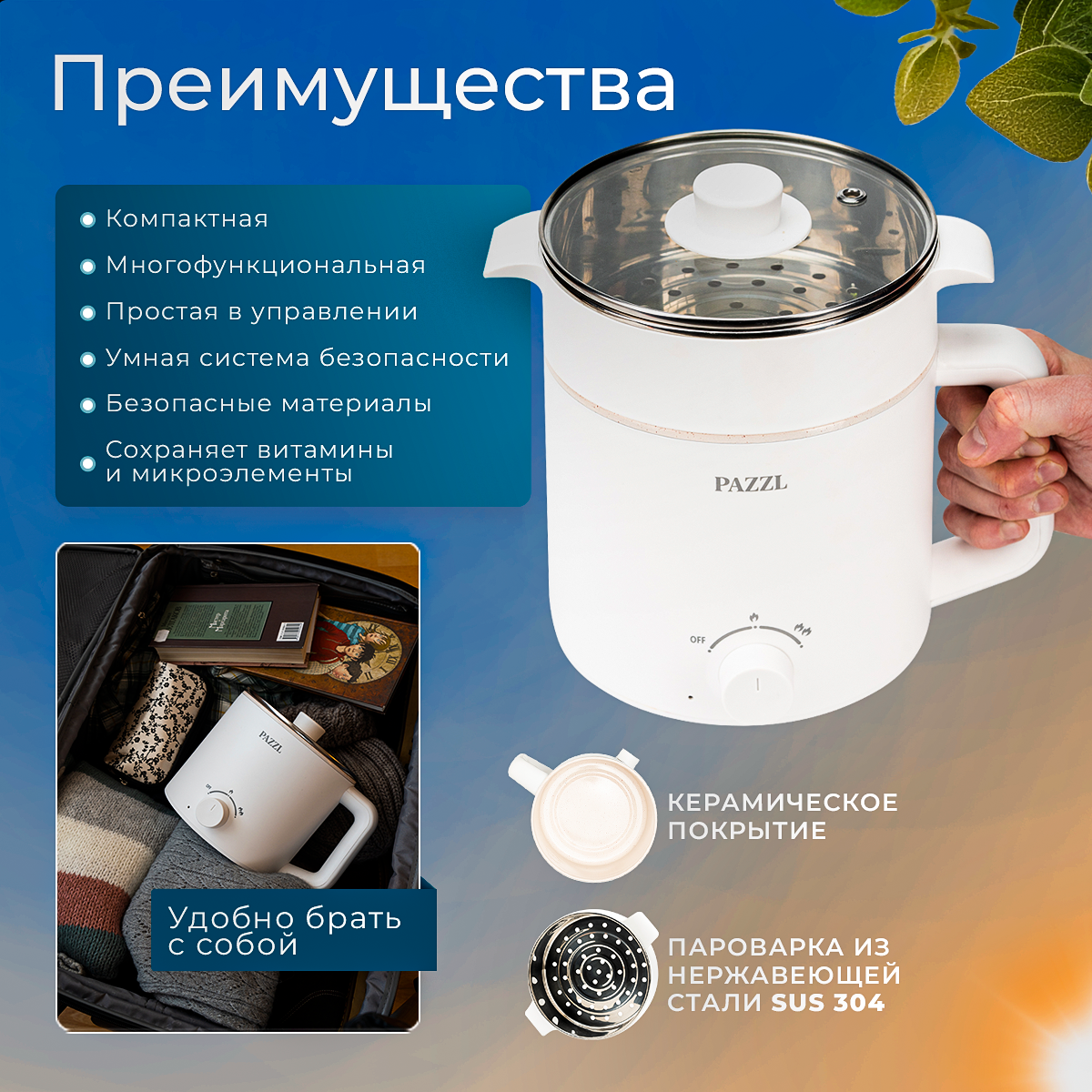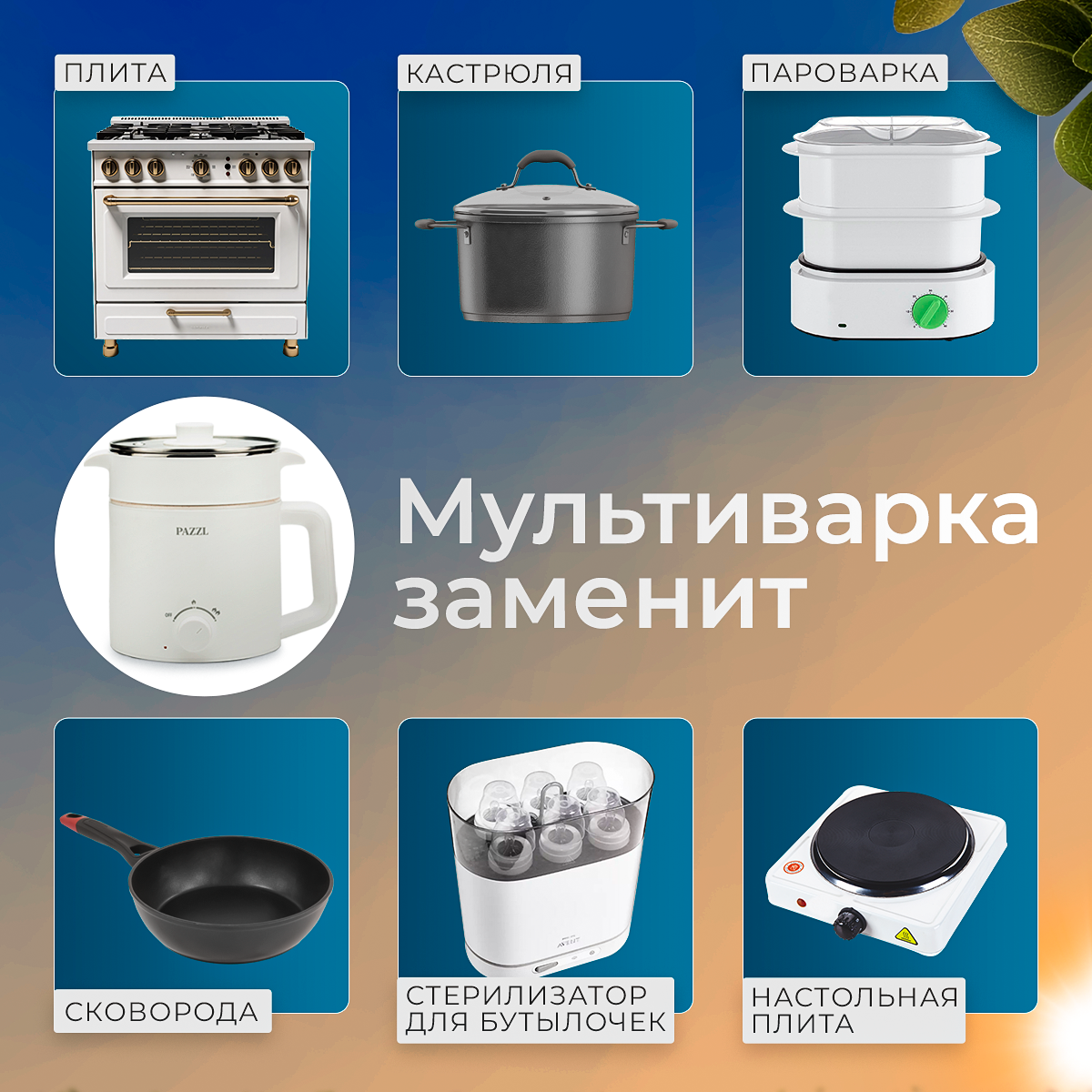 Купить PAZZL Электрическая мультиварка 6 в 1: миниварка, пароварка, электрическая кастрюля, суповарка, яйцеварка, рисоварка