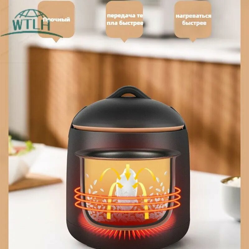 Мини-рисоварка объемом 1,2 л для домашнего использования, покрытая керамической глазурью, черная