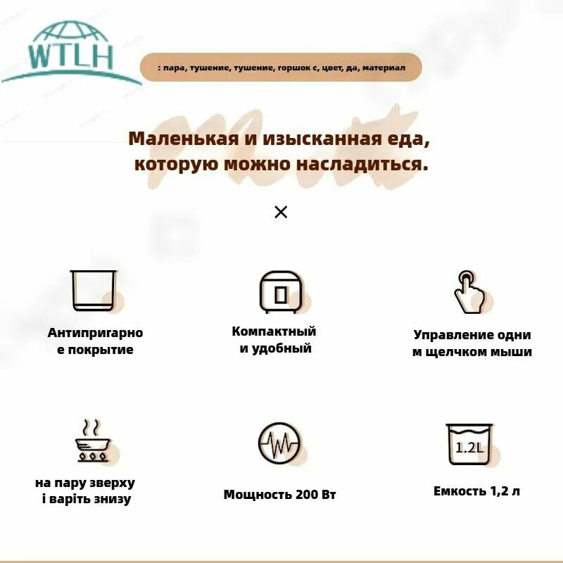 Мини-рисоварка объемом 1,2 л для домашнего использования, покрытая керамической глазурью, белая интересное: