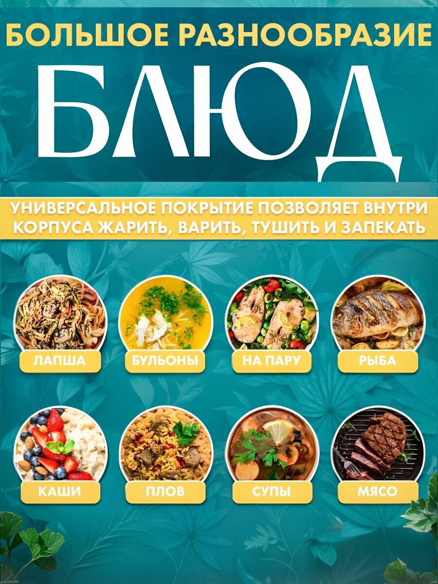 | Программы | варка, жарка, запекание, крупа, мясо, пельмени, плов, приготовление на пару, суп, тушение |