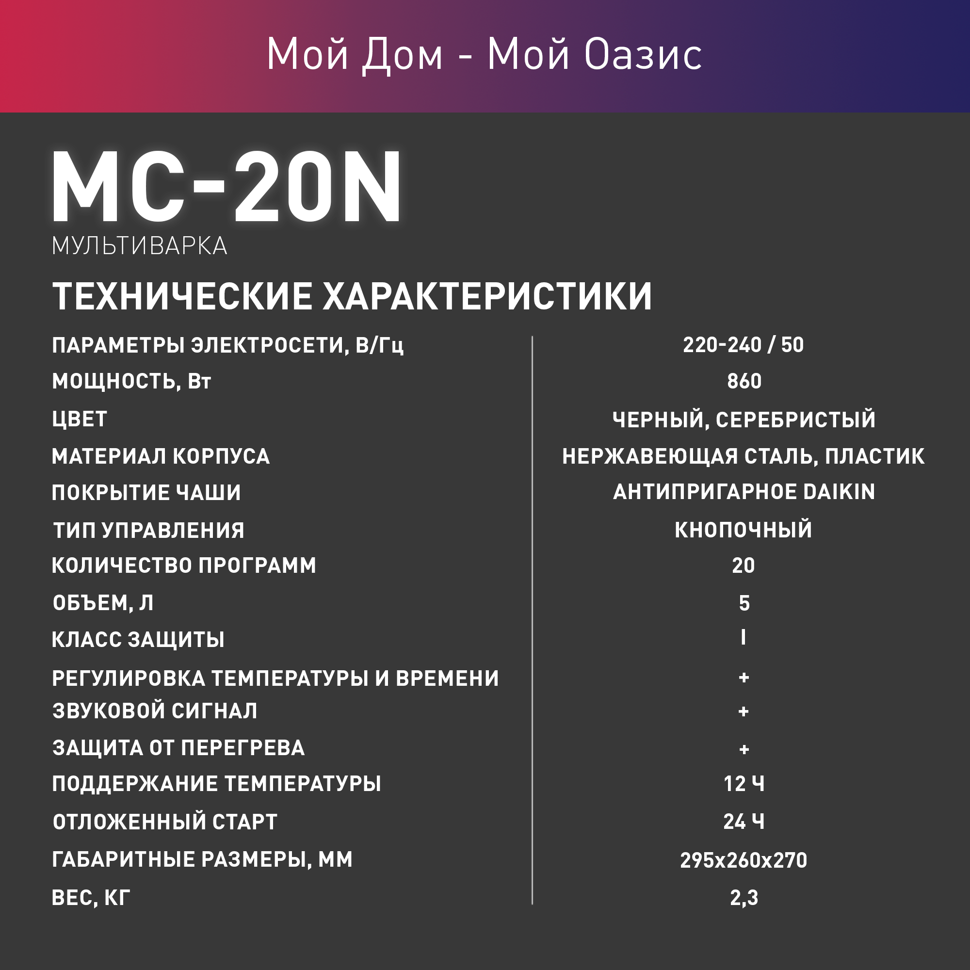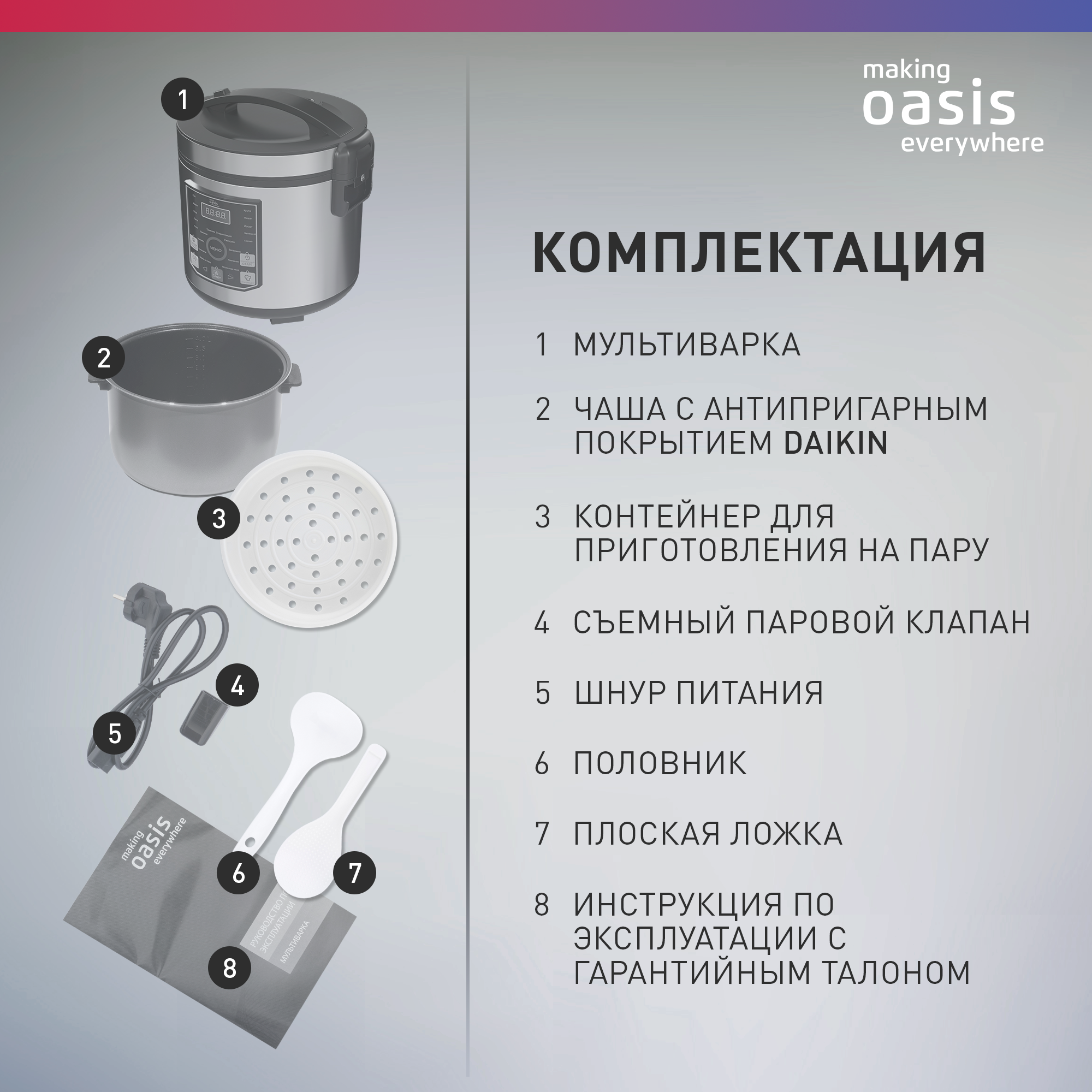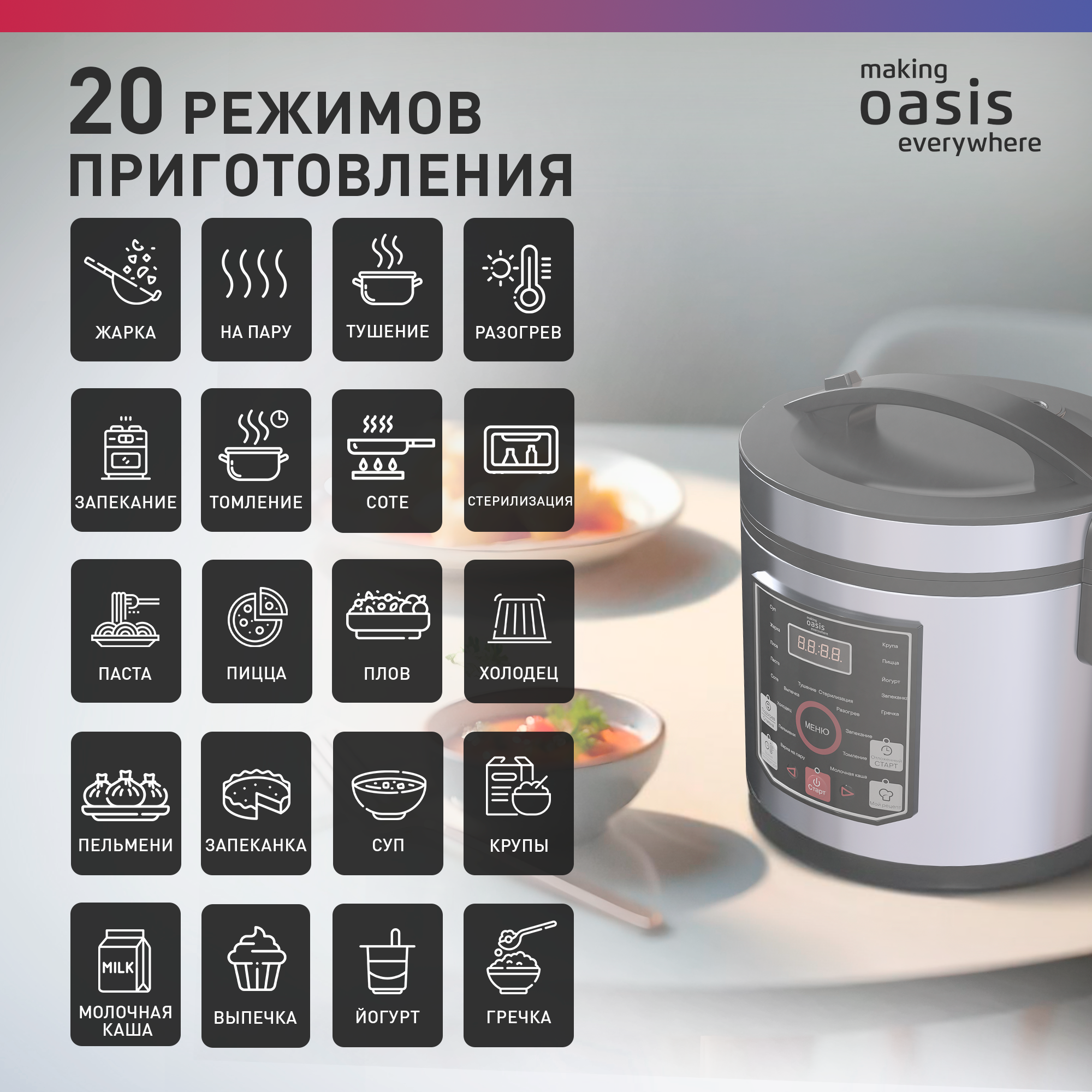 Мультиварка электрическая для кухни making Oasis everywhere MC-20N, 860 Вт интересное: