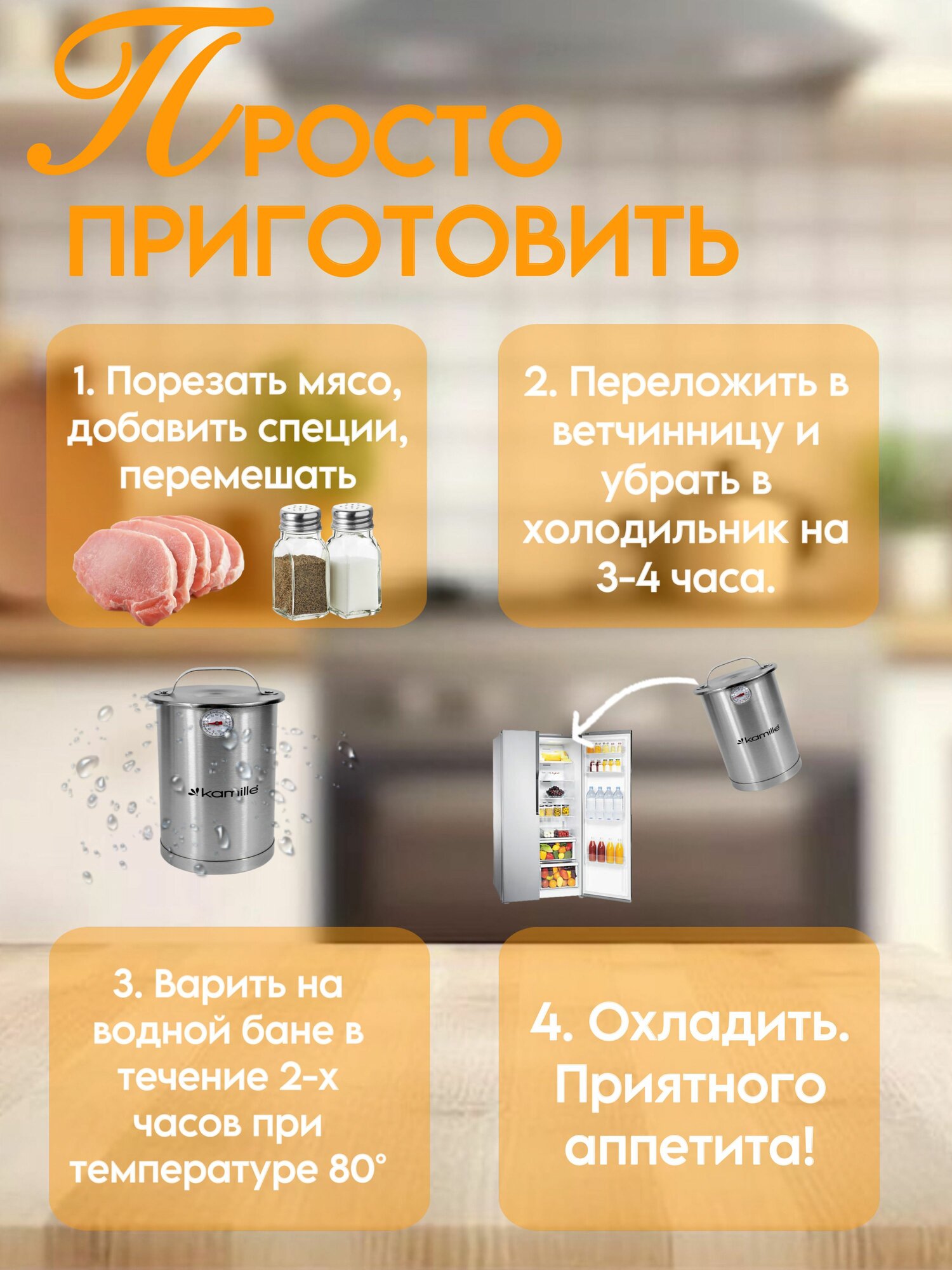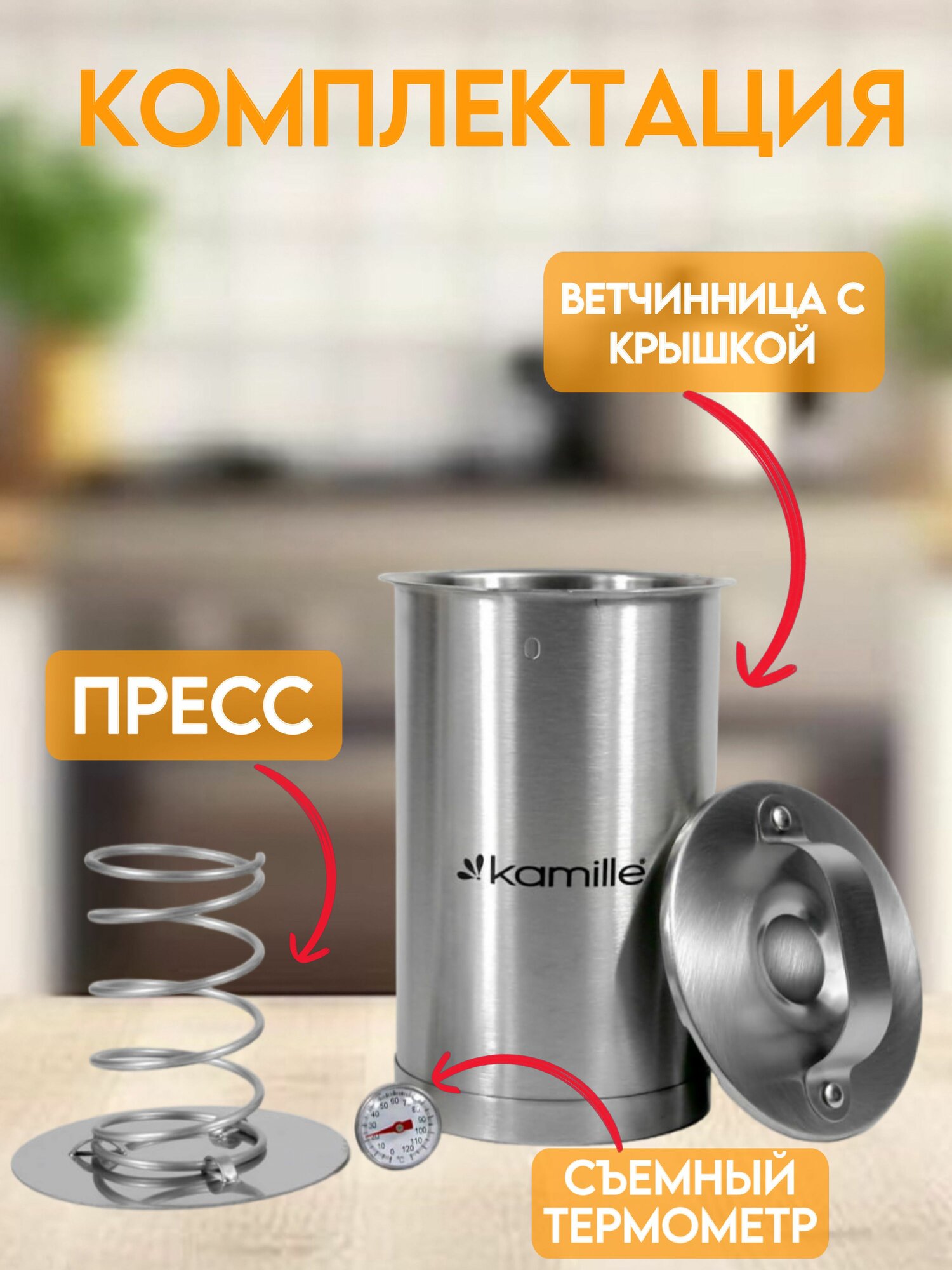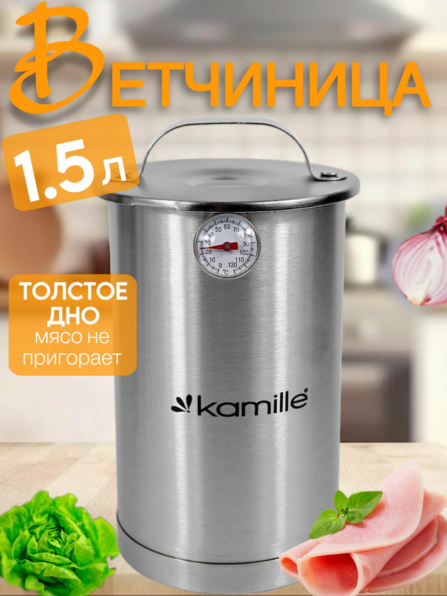 Ветчинница из нержавеющей стали с термометром 1,5 л. Kamille КМ-6506 интересное: