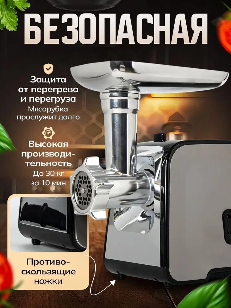 | Насадки | диск для фарша / насадка для кеббе / насадка для приготовления колбас |