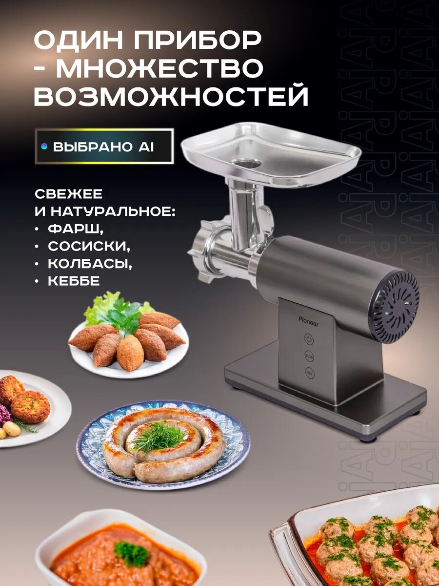Мясорубка Pioneer MG100 Platinum, повышенная производительность, насадки + решетка для крупной рубки мяса, 2000 Вт интересное: