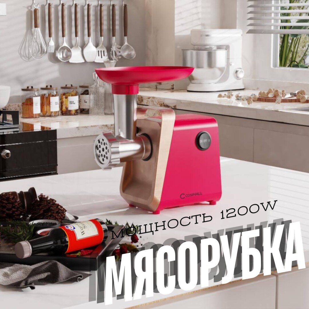 Купить Электрическая мясорубка мощная / Мясорубка профессиональная с реверсом / Многофункциональное устройство для измельчения мяса 1200 Вт / красный