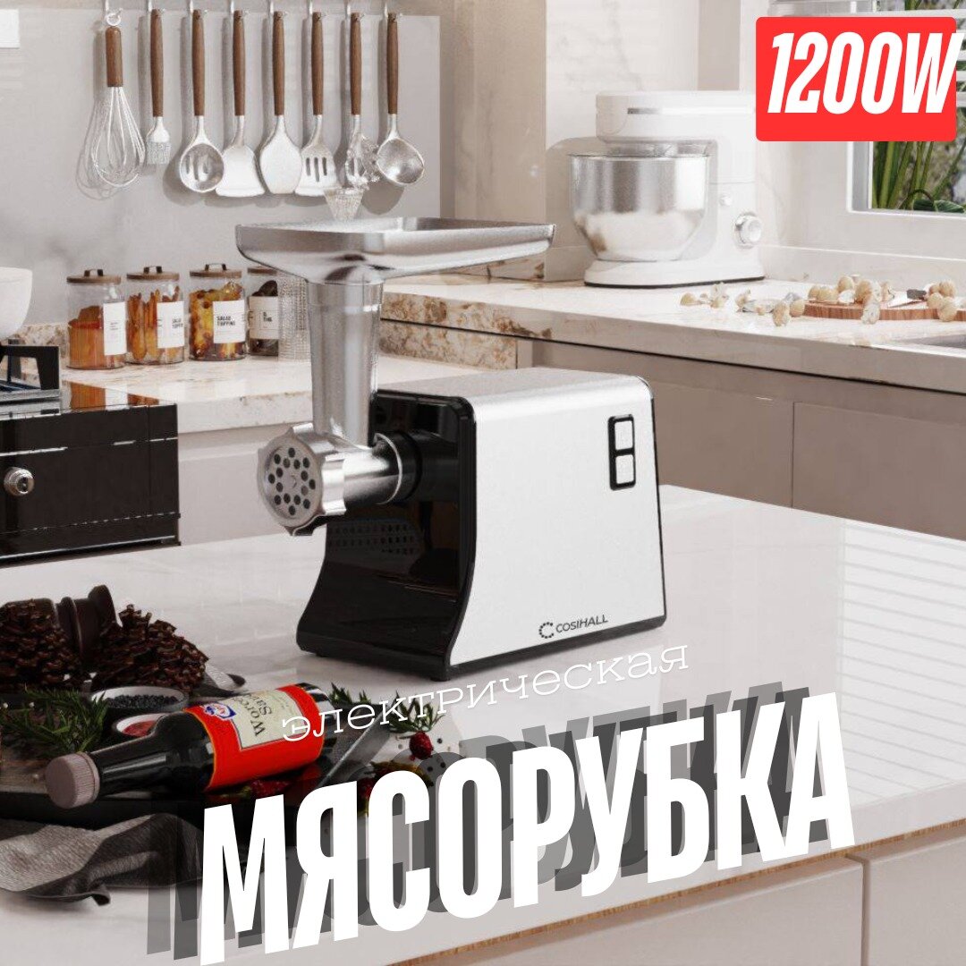 Электрическая мясорубка мощностью 1200 Вт / Профессиональное устройство с реверсом / Многофункциональный кухонный помощник / белый