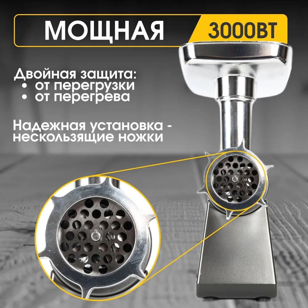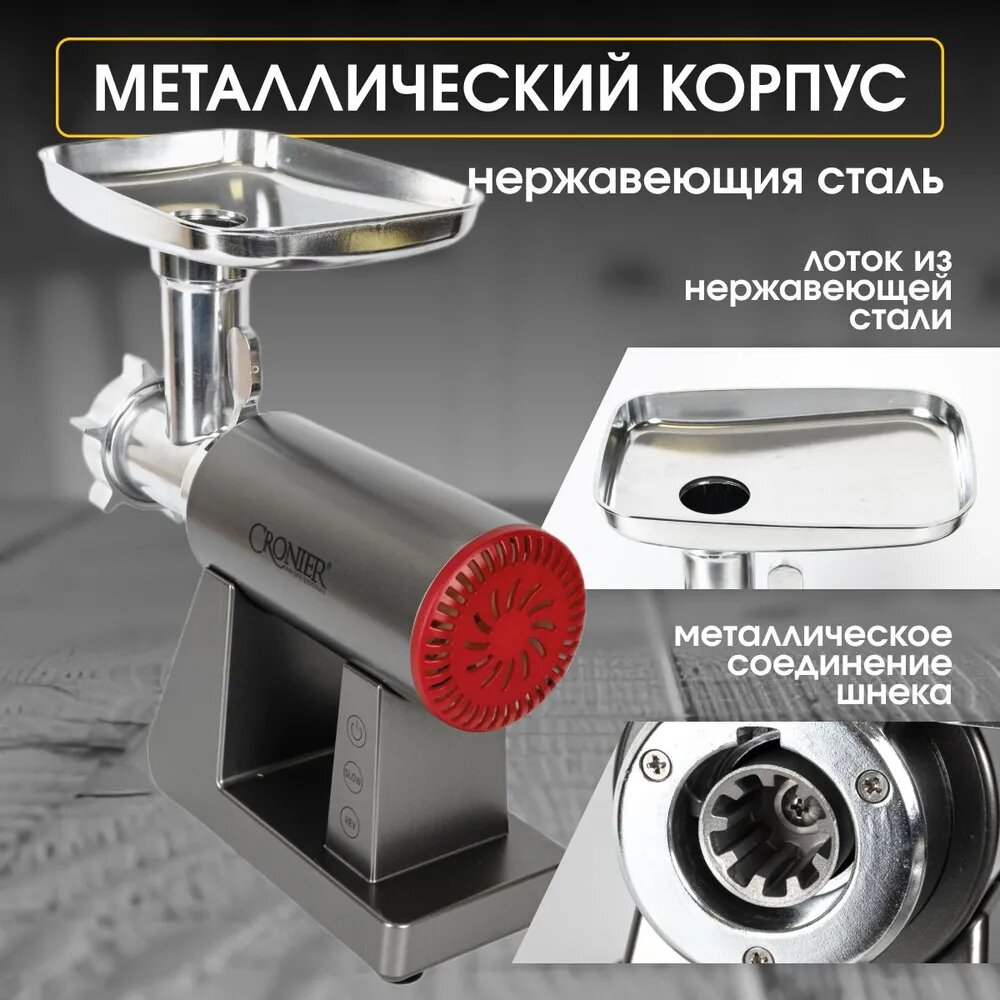 Электрическая Мясорубка CRONIER CR-1919 с насадками для мяса и овощей, 3000 Вт / Электромясорубка, 5кг/мин интересное: