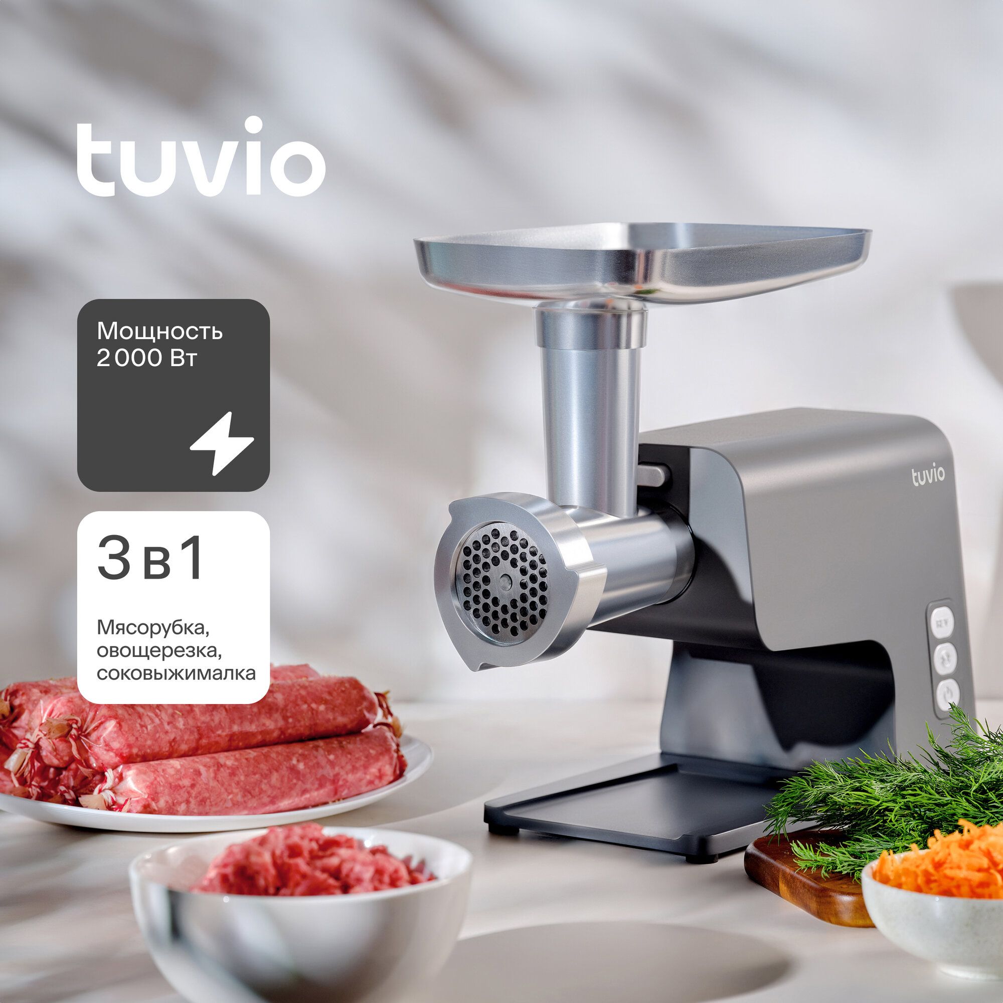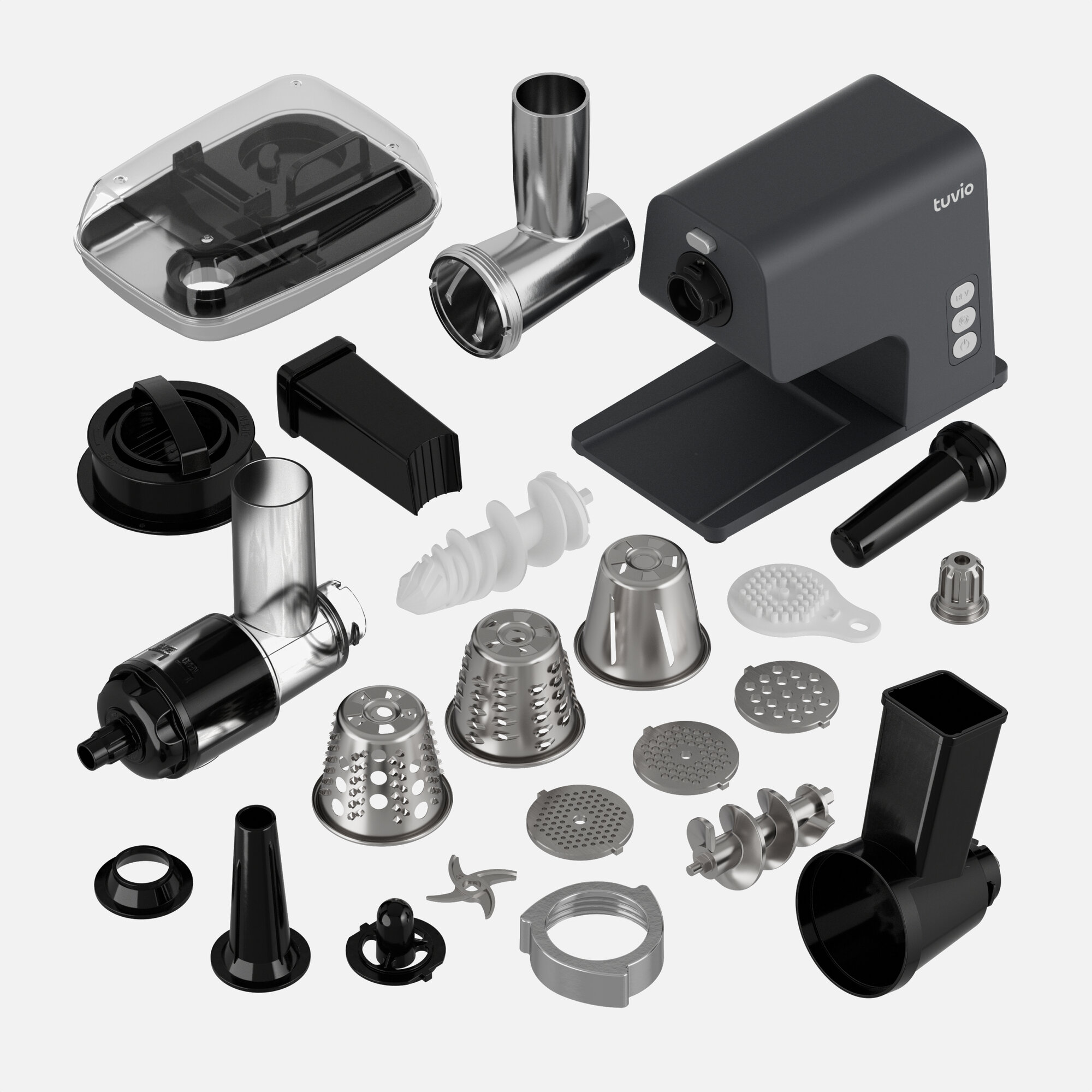 Мясорубка с овощерезкой и соковыжималкой Tuvio TMG04MVJ, серая интересное: