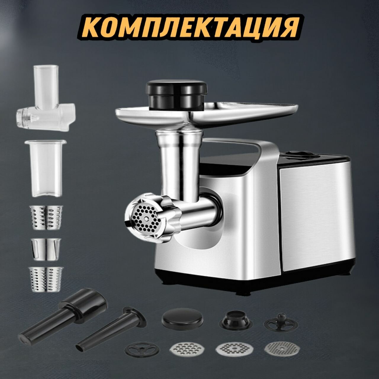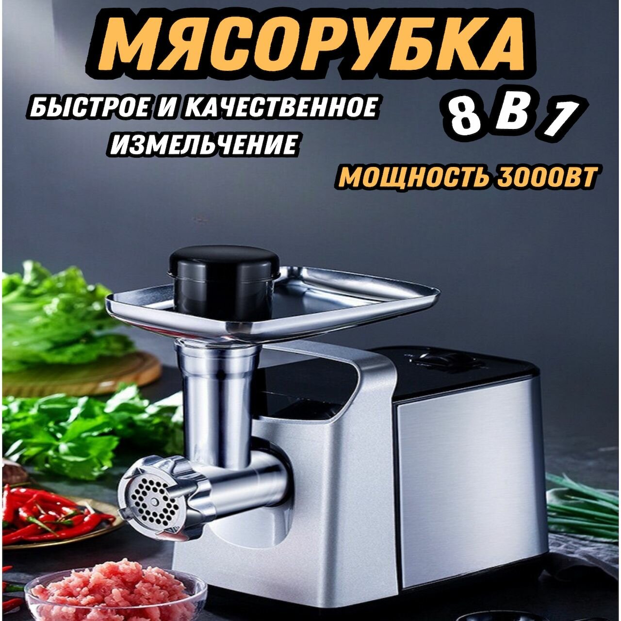 Мясорубка электрическая с насадками для овощей 3000Вт, электромясорубка, серебристый интересное: