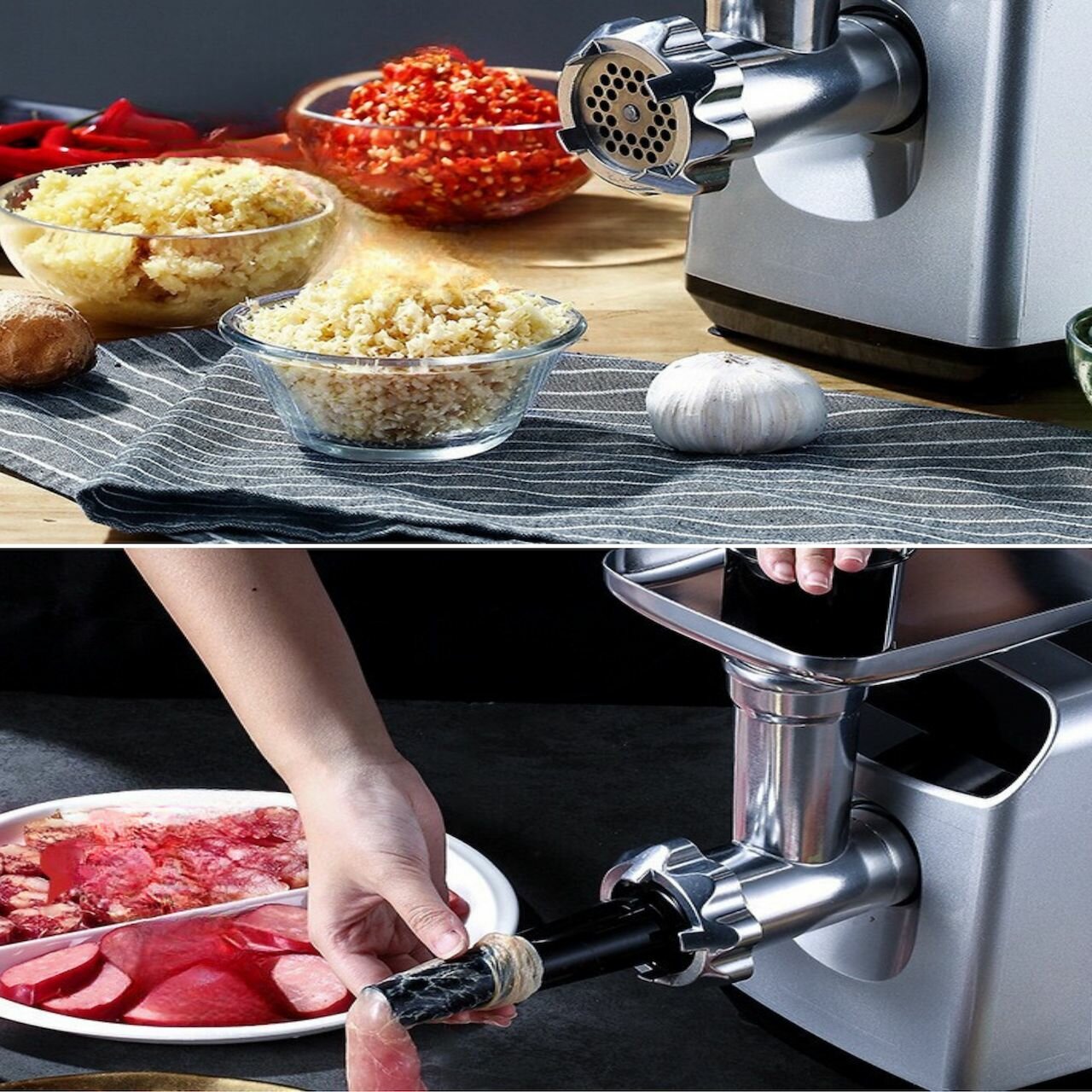 Купить Мясорубка электрическая с насадками для овощей 3000Вт, электромясорубка, серебристый
