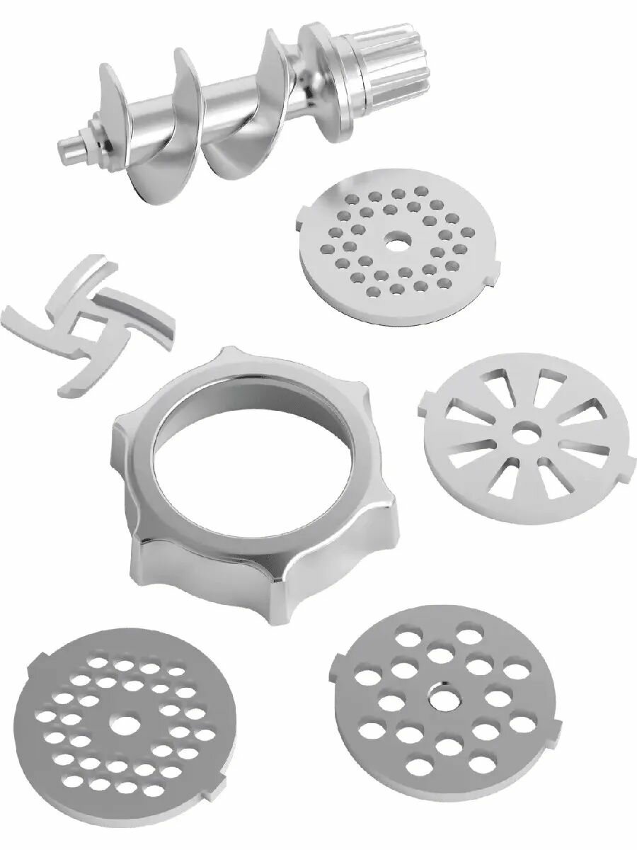 | Комплектация | Документация, загрузочный лоток, насадка для кеббе, насадка для колбас, перфорированные диски 3 шт, насадка-шаблон на выпечки, толкатель |