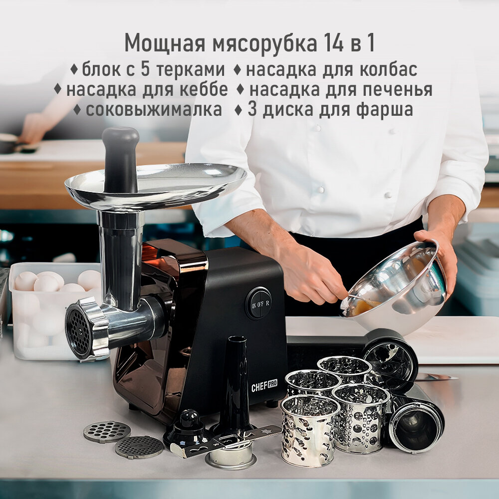 Мясорубка CHEF PRO CF-MG1450D черный/матовая бронза интересное: