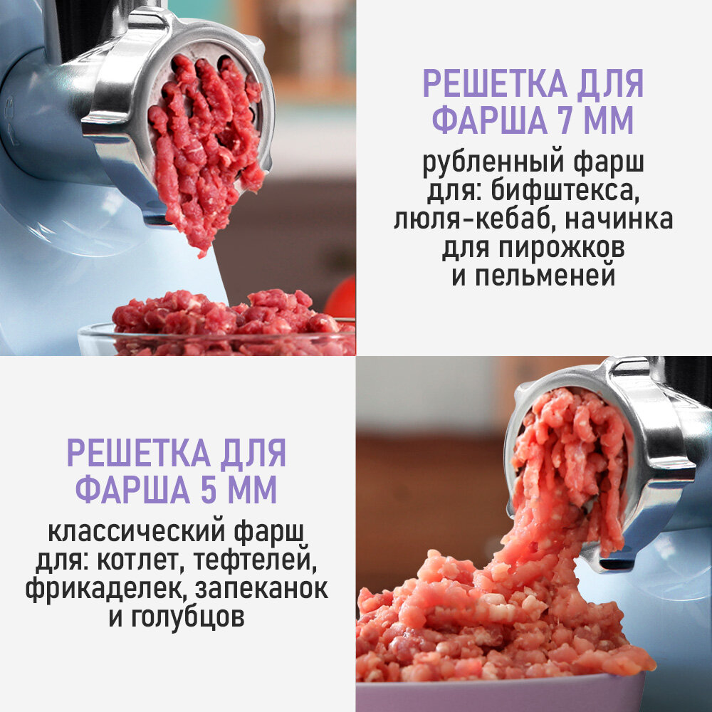 | Насадки | насадка для кеббе / насадка для приготовления колбас / насадка для шинковки |