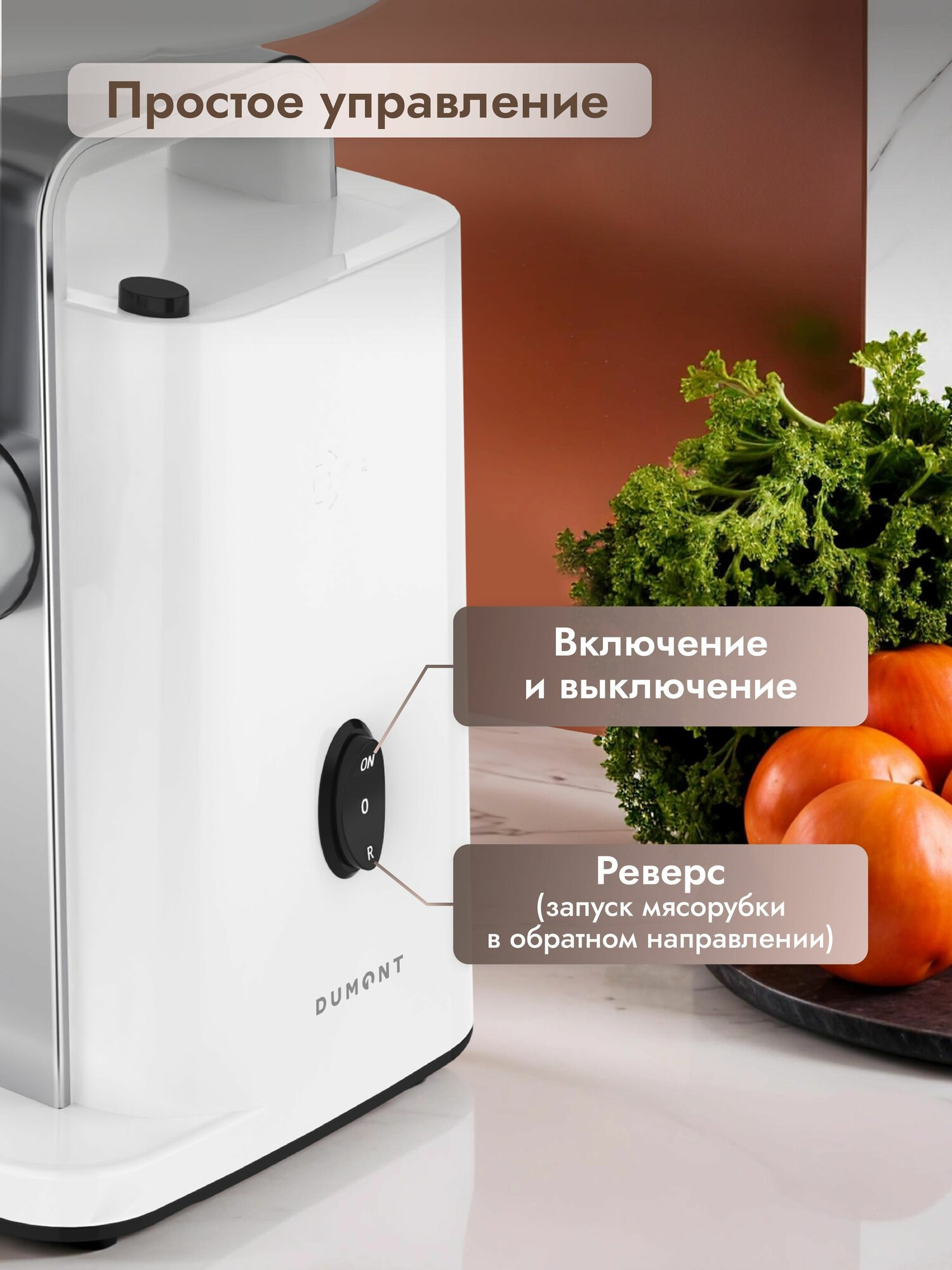 Купить Электрическая мясорубка Dumont DMMG-3001, функция реверса, 5 насадок, для компактной кухни