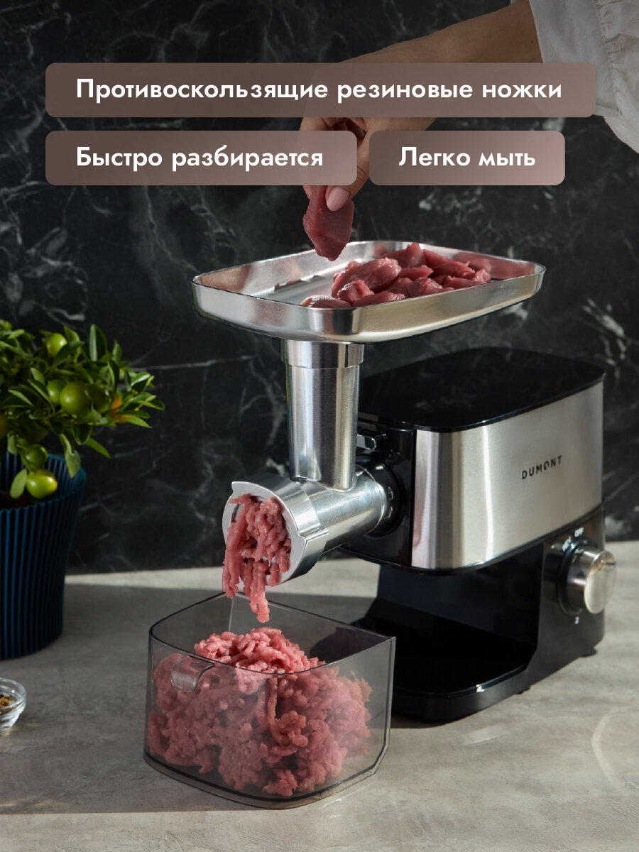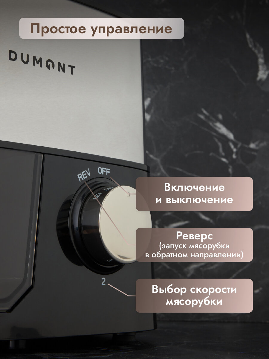 Электрическая мясорубка Dumont DMMG-3003 с реверсом, отсеком для хранения, 5 насадок, 1400 Вт. интересное: